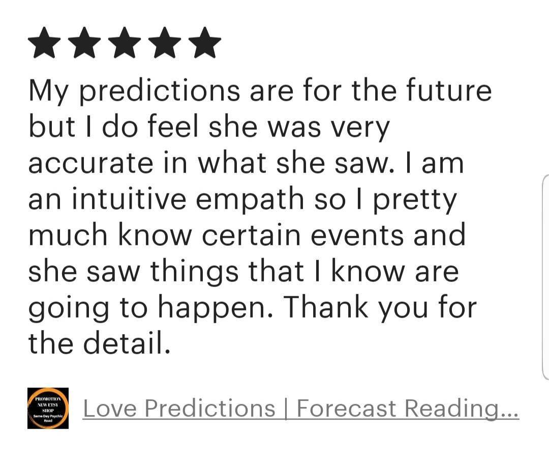 Customers appreciate my compassion, insightful readings, and timely responses. Many describe their experiences as supportive and accurate.