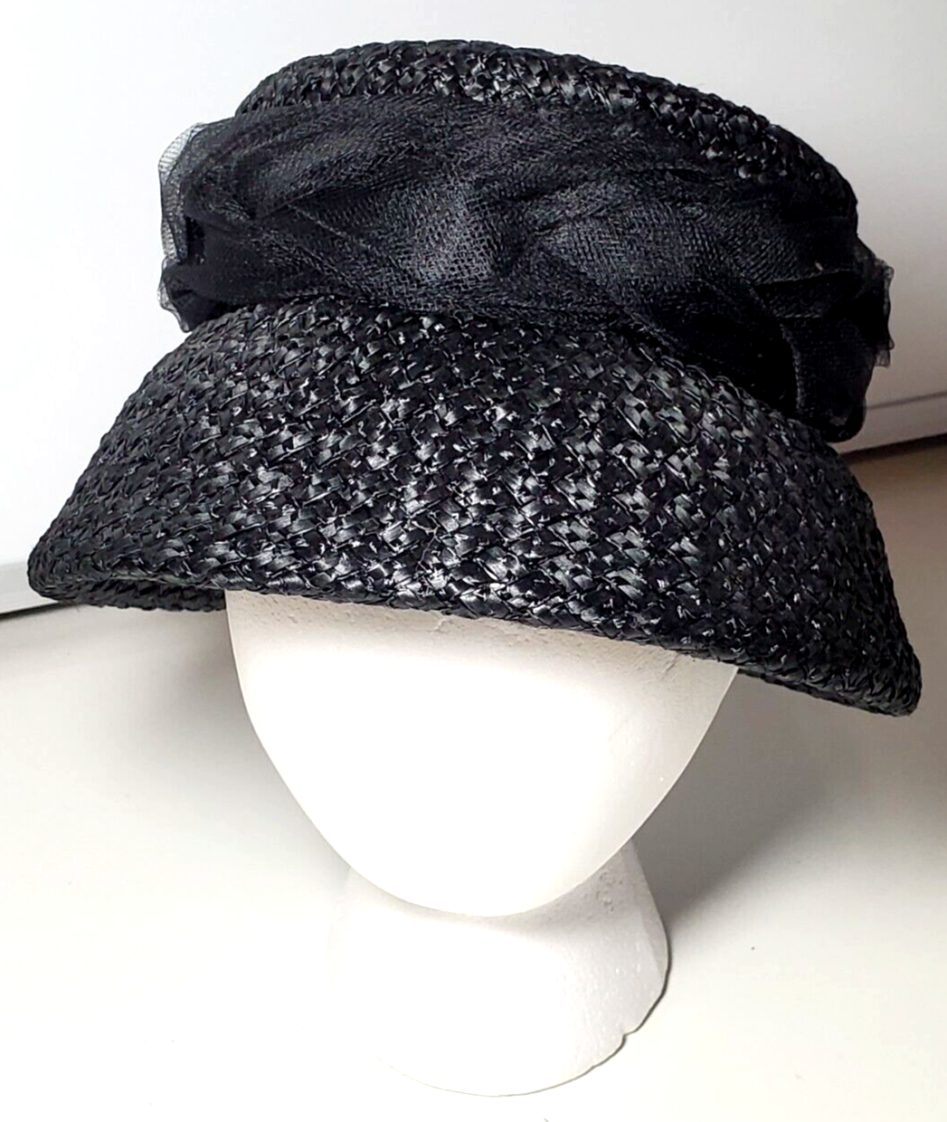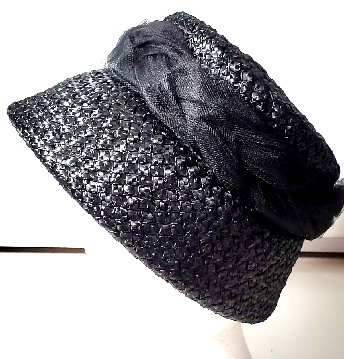 Vintage Woman's Bucket Church Hat Mourning Hat Union Made 7" Black