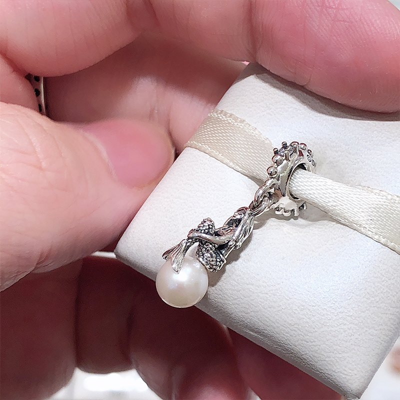 Ariel will become part of your world with this Disney The Little Mermaid charm. Striking a delicate pose, Ariel sits atop a freshwater cultured pearl. Intricately detailed and fine-lined, the charm channels Ariel's signature look, including the scales on her fin and her long hair. Show your affection for Disney's singing underwater heroine and add the Ariel charm to any Disney charm collection for a touch of adventure and curiosity.