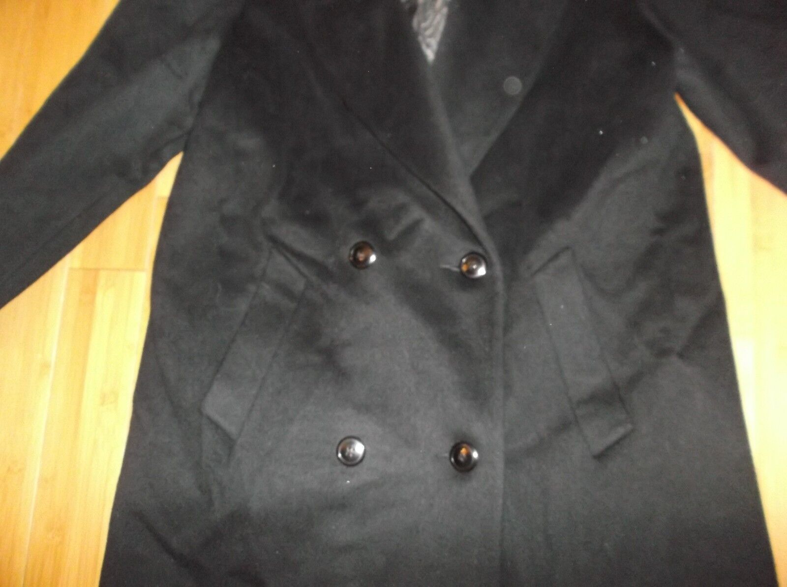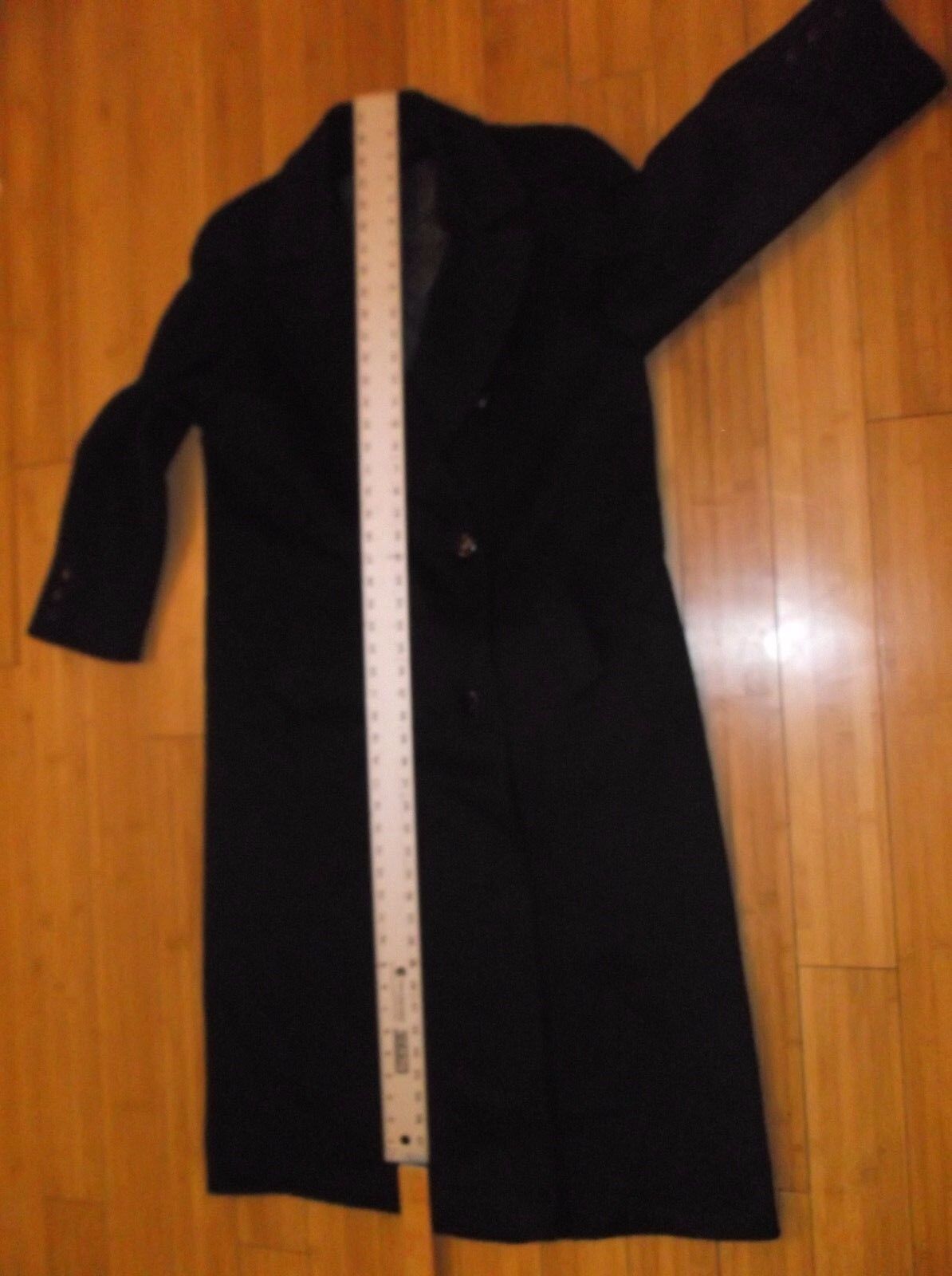 Vintage Women's Alorna Made in Mexico Black Wool Blend Trench Overcoat
