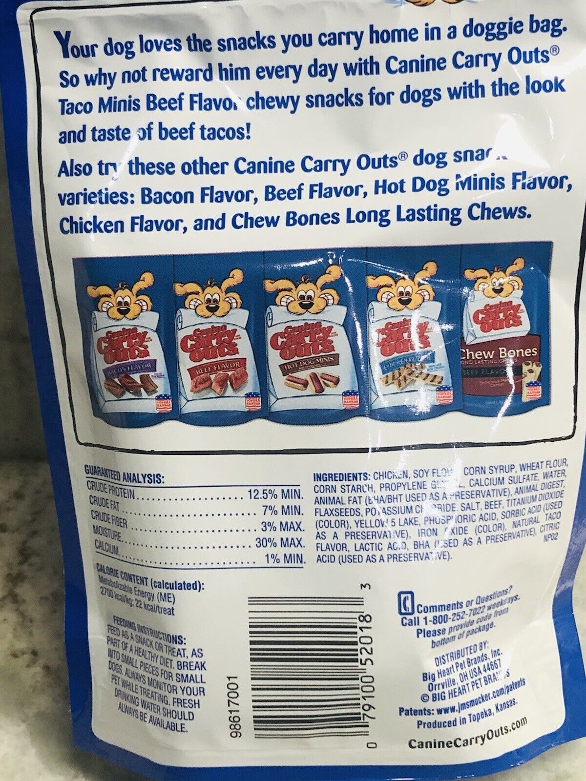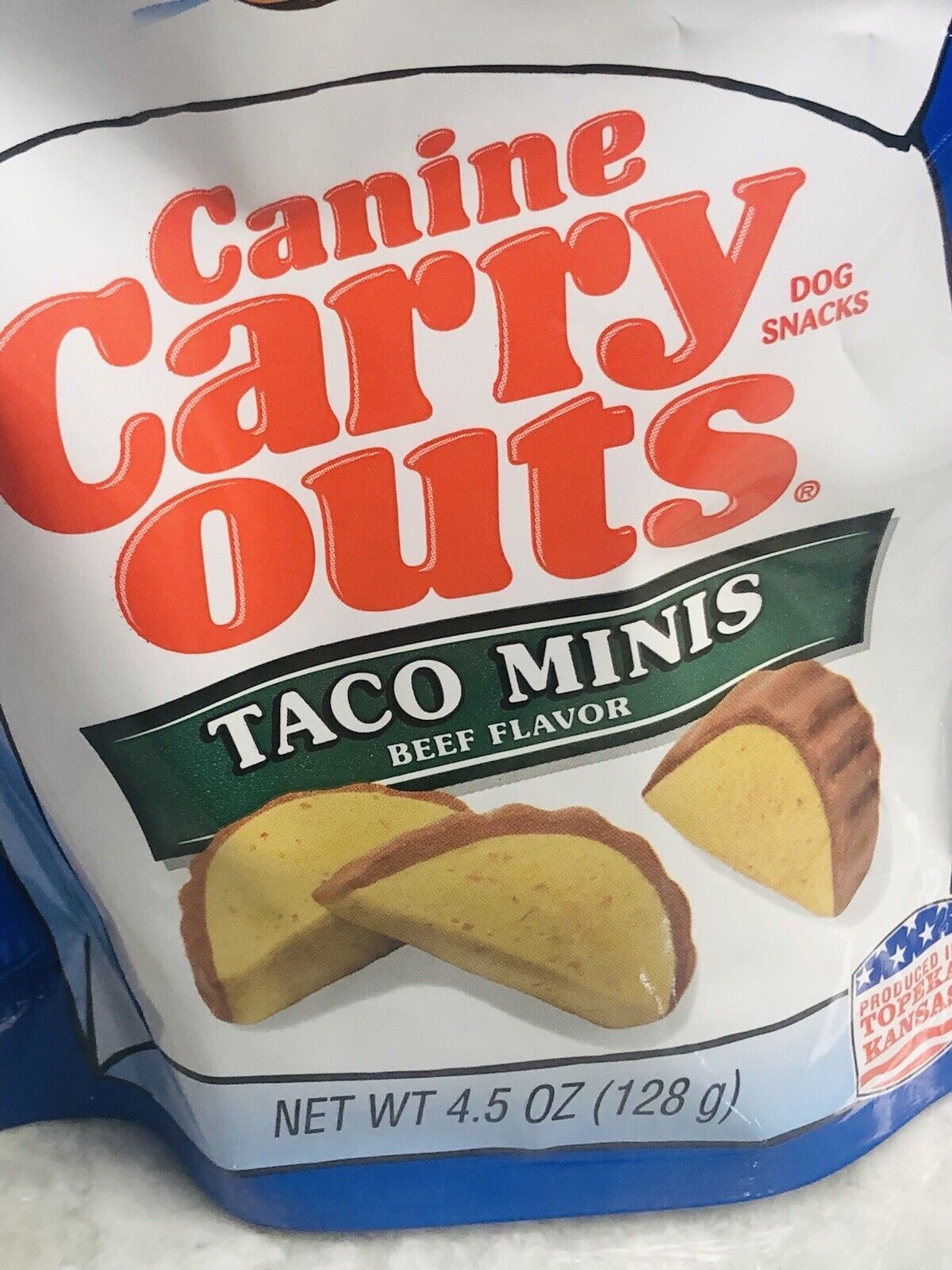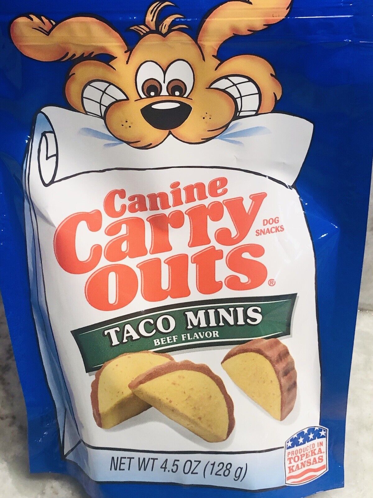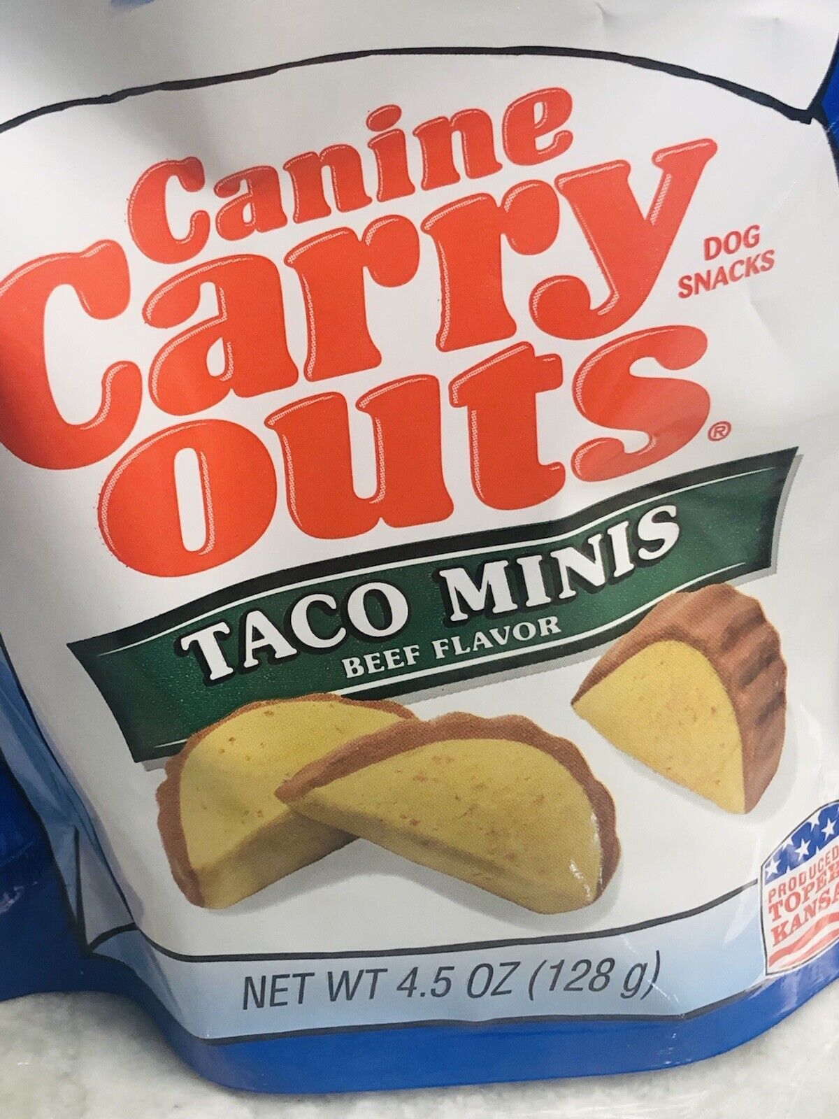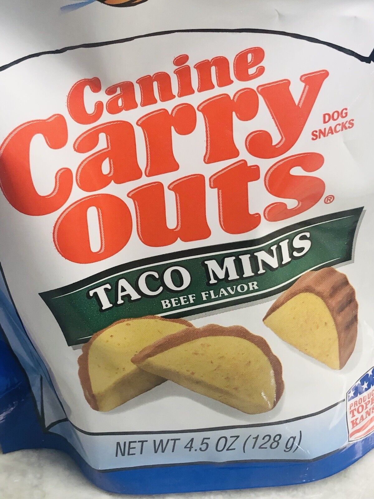 Ship N 24 Hours. New-Canine Carry Outs Beef Flavor Taco Minis. 4.5 oz.
