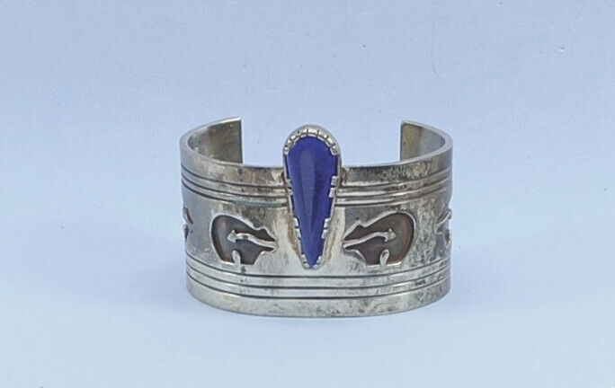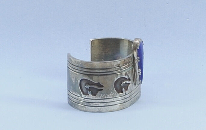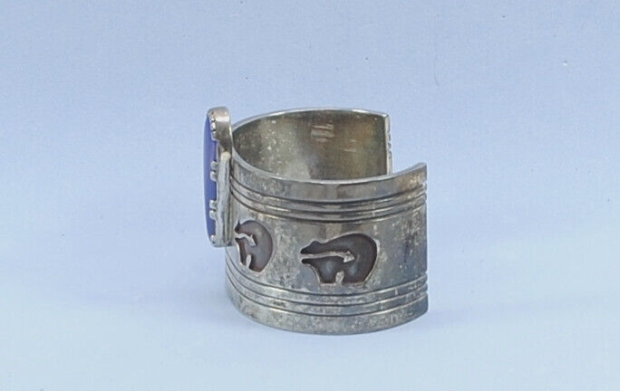 Navajo Overlaid Heartline Bear Cuff Sterling Silver Bracelet 114g Lapis Signed