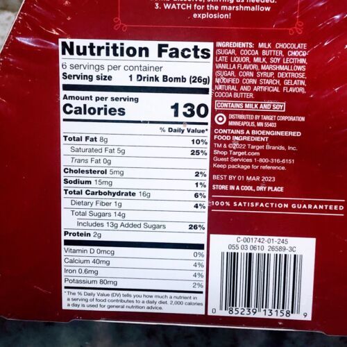 Wonderland 6 Milk Chocolate Hot Drink Bombs. Filled W/ Mini Marshmallows. 5.5oz.