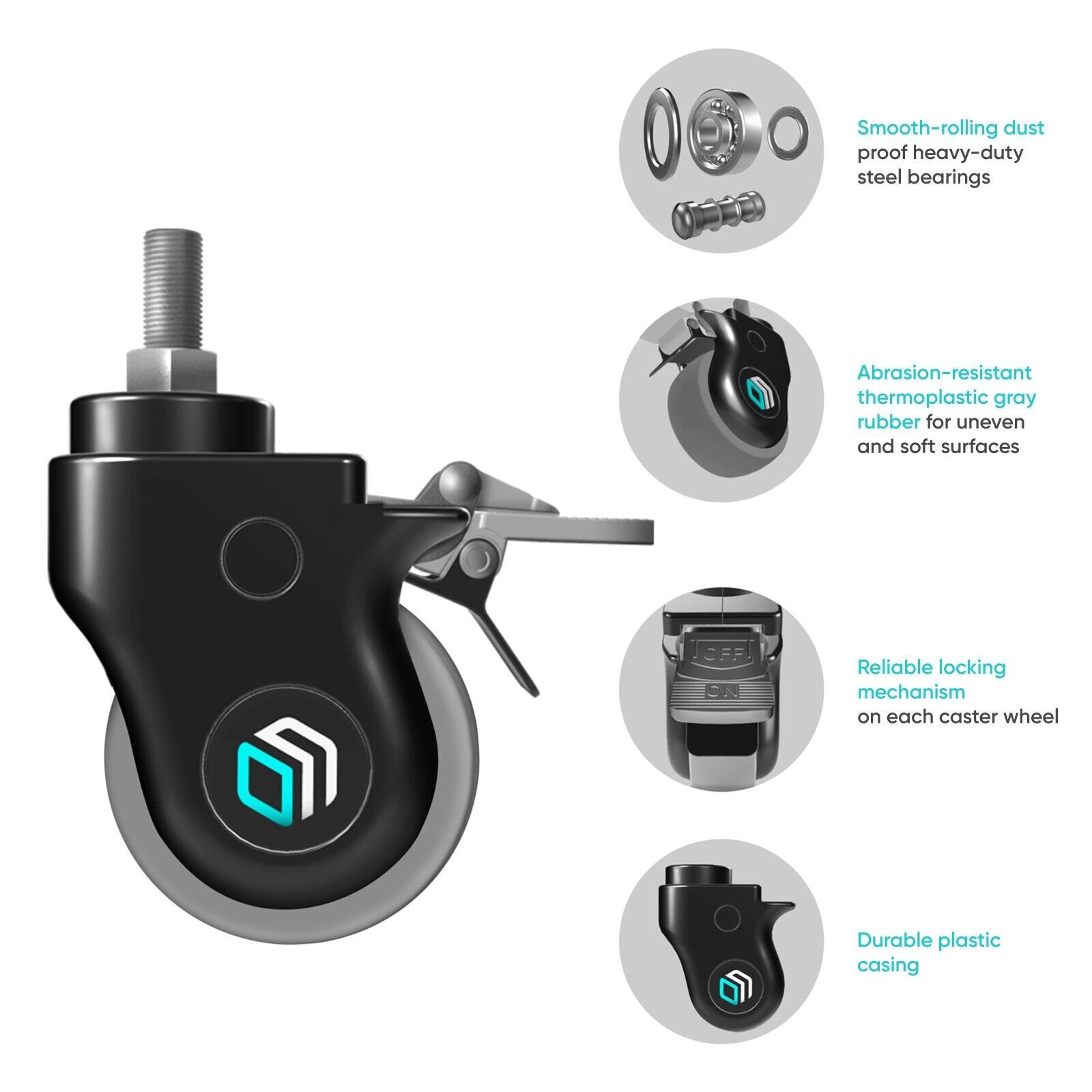 ONKRON Caster Wheels 4 inch for Mobile TV Stand with Double Safety Lock, Black