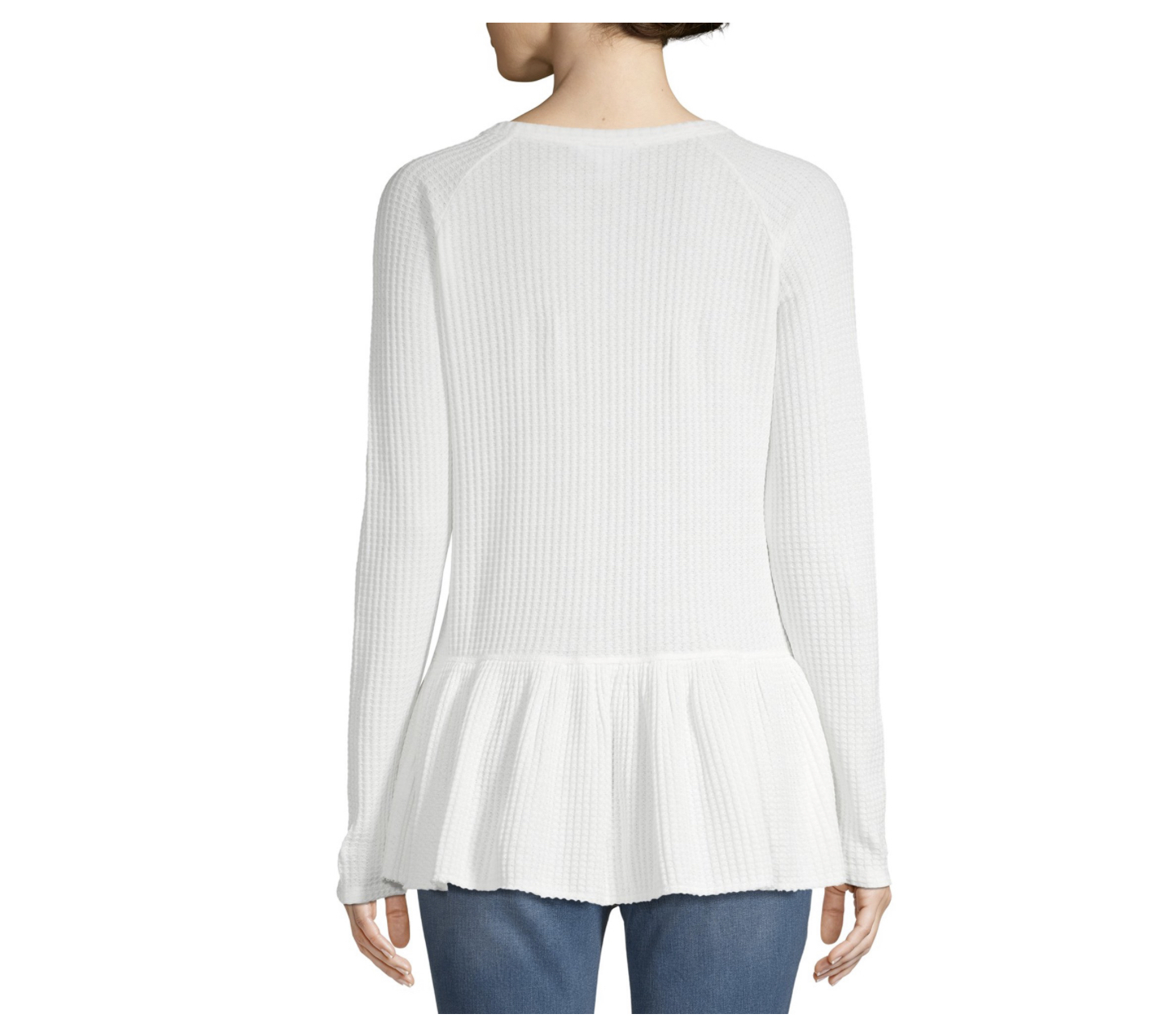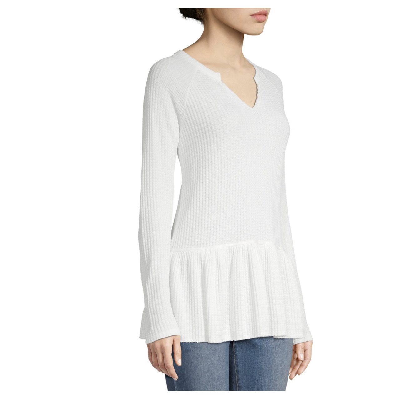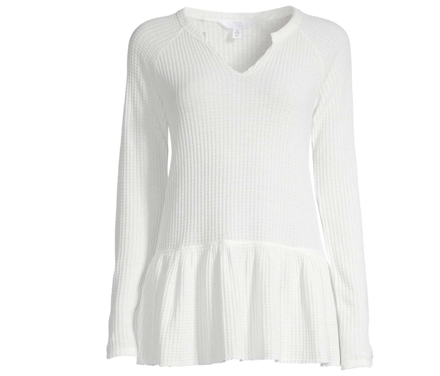 Hit refresh on your casual style. Time and Tru's peplum hem thermal top puts a different spin on your jeans and tee look. Updated and modern, you're sure to love the flattering fit too.