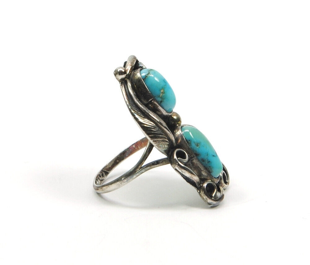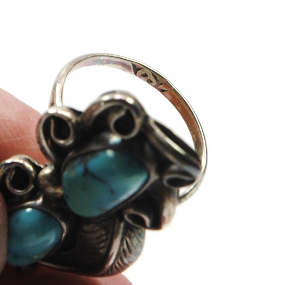 Navajo Turquoise Silver Ring Feather Leaf and 50 similar items