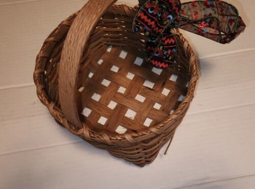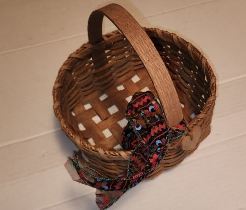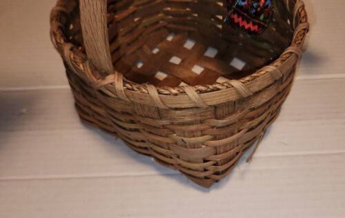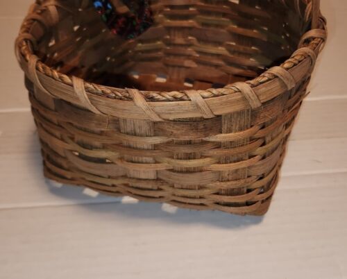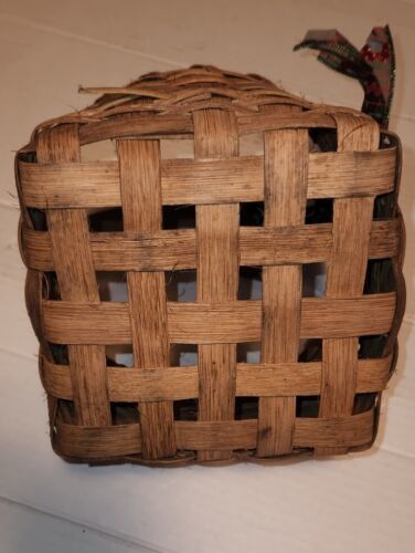 Good condition round top square bottom basket. Measure 9 inches across the top. about 9 inches tall. Maker and age is unknown.