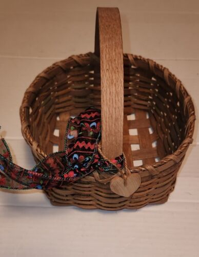 Cute Square Bottom Woven Round Top Basket Heart Easter Country Decor