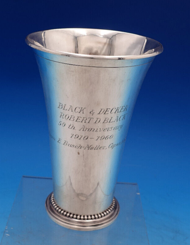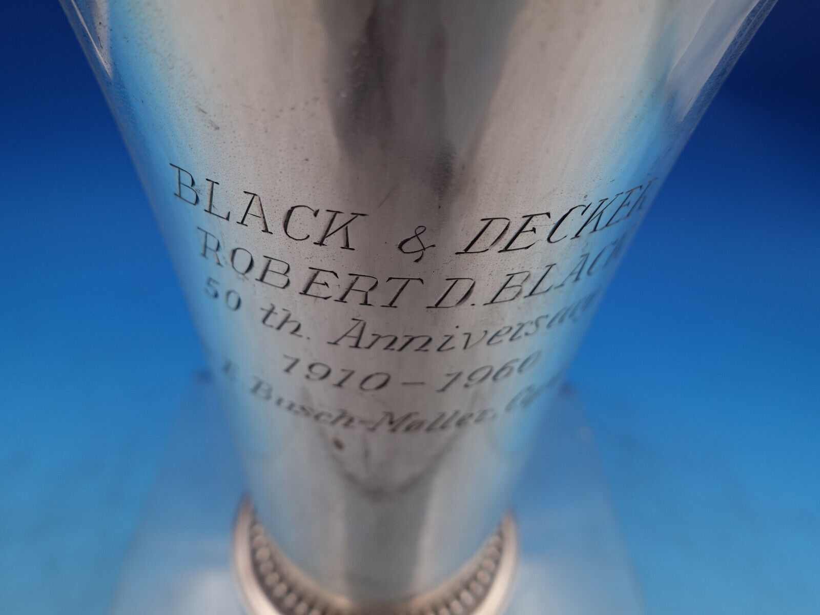 measures 4 1/4" x 6 1/4" tall and weighs 8.14 troy ounces. It is monogrammed with an inscription (as shown) Black Decker 50th Anniversary 1910-1960 and is in excellent condition, as shown. Wonderful piece!