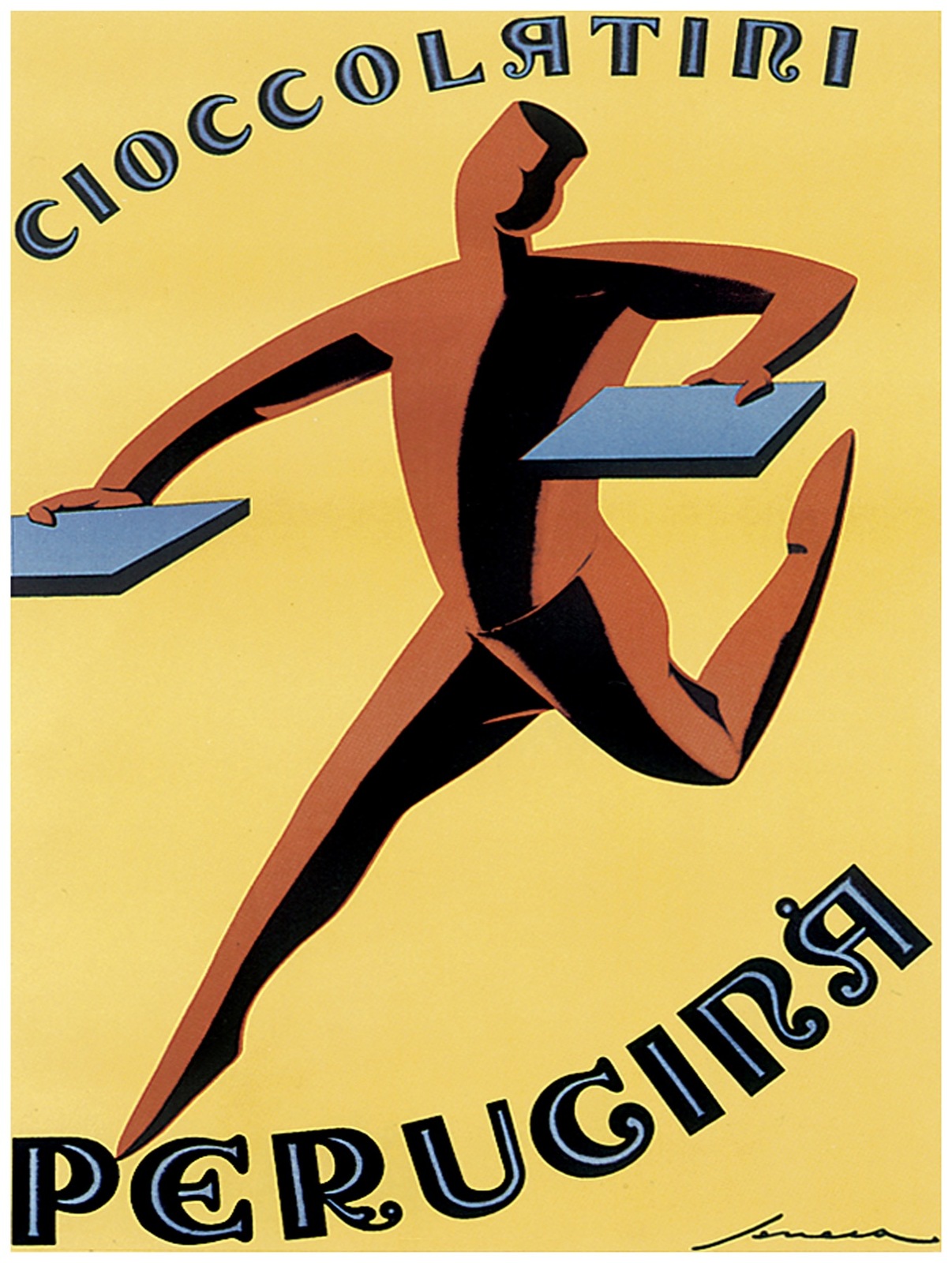 9658.Cioccolatini.perucina.man running with trays.POSTER.decor Home Office art