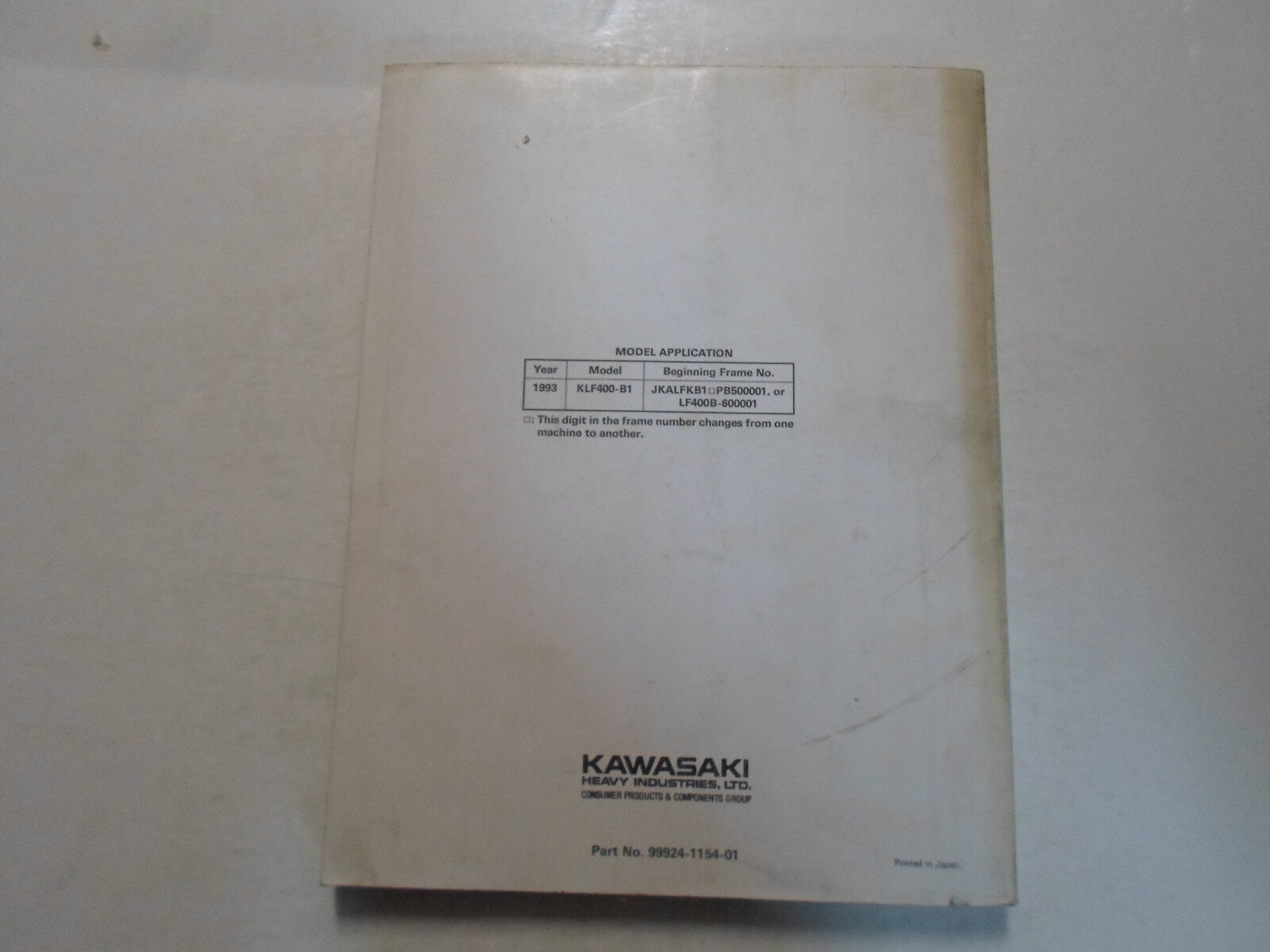 1993 Kawasaki Bayou 400 4x4 KLF400 4x4 ATV Service Repair Shop Tached