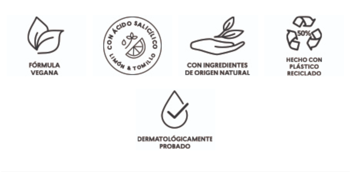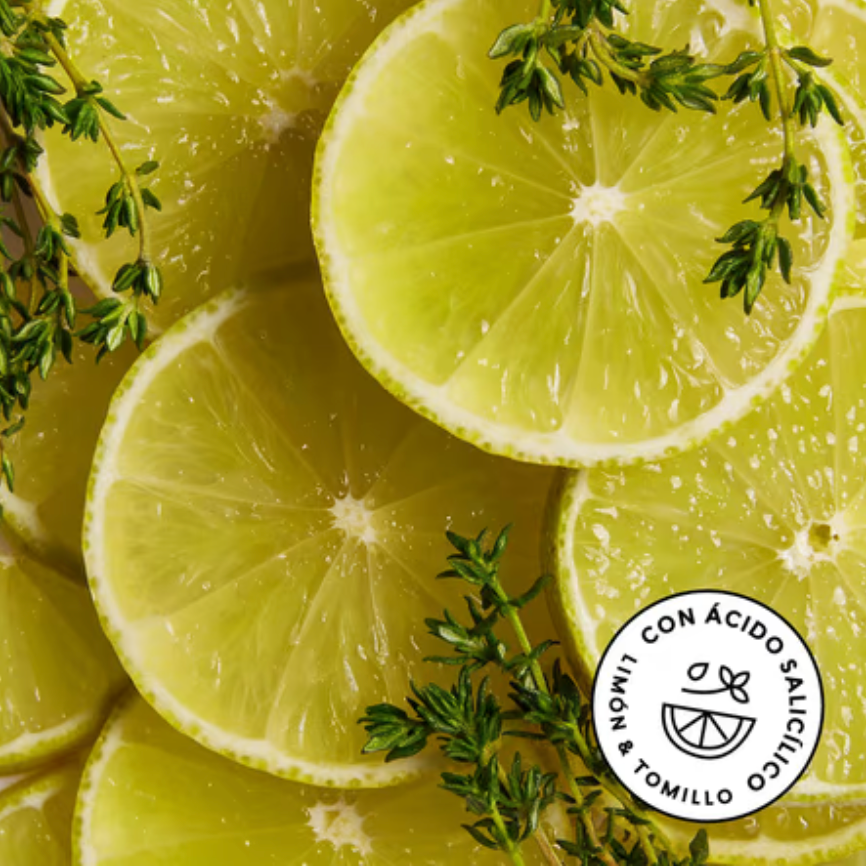 - Thyme extract and lemon peel extract: Helps regulate excess oil produced in the skin. Composed of sugars, fruit acids and vitamins, they have moisturizing and cleaning properties.