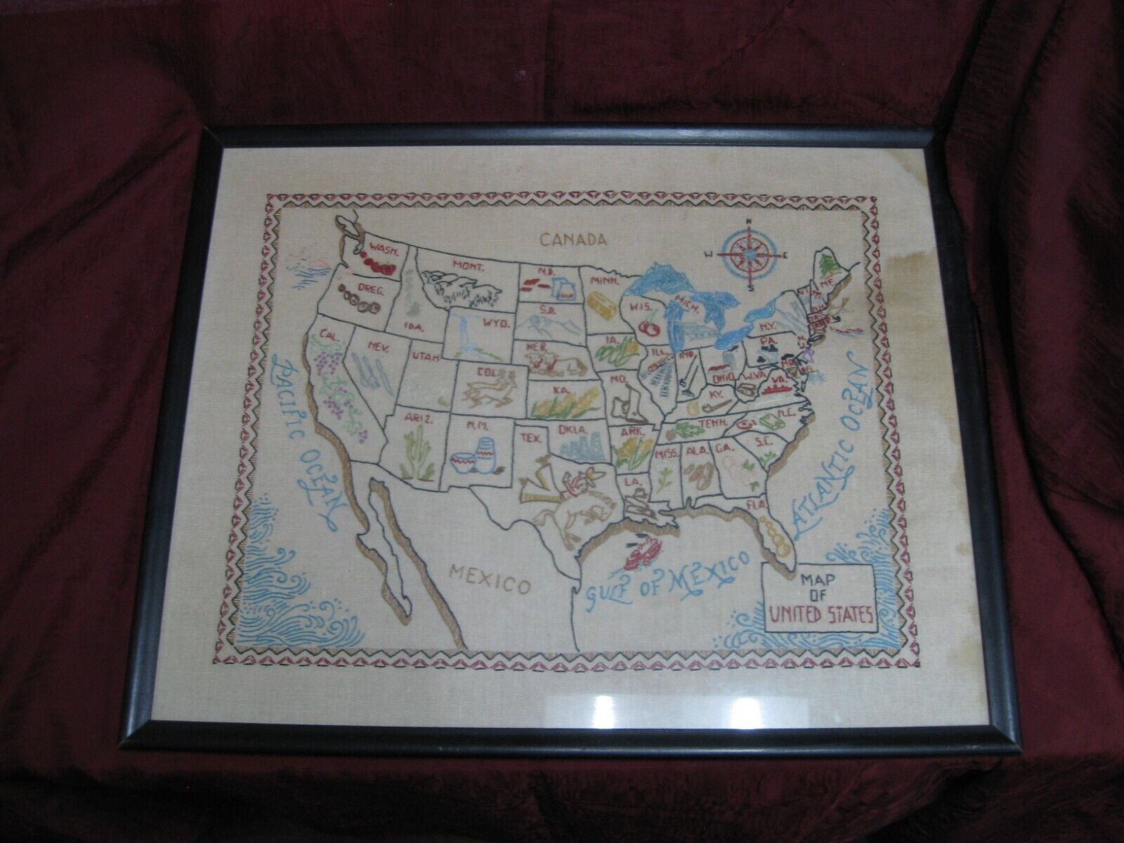 Antique 1947(?) Sewn America Production Map - Resources - Business