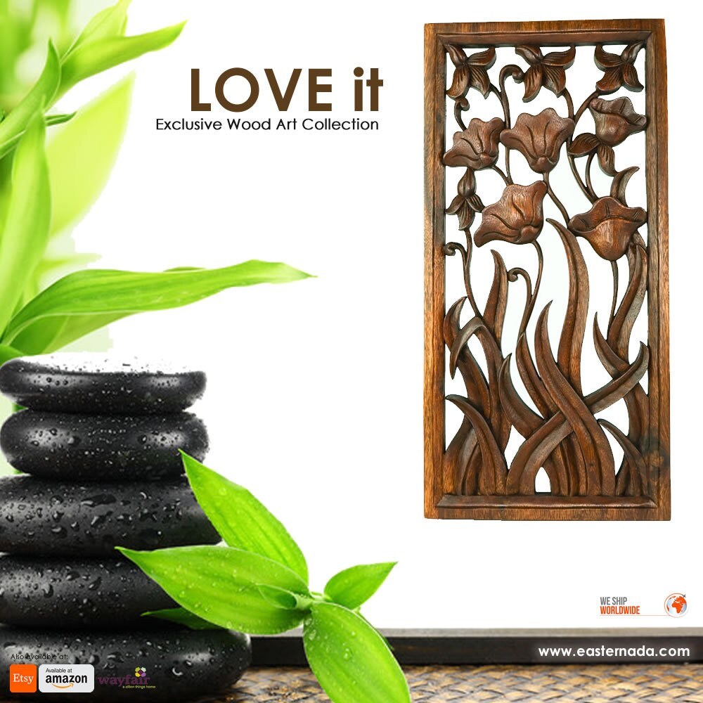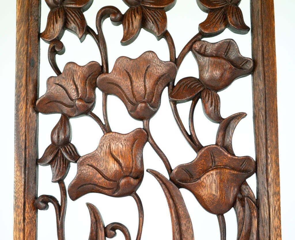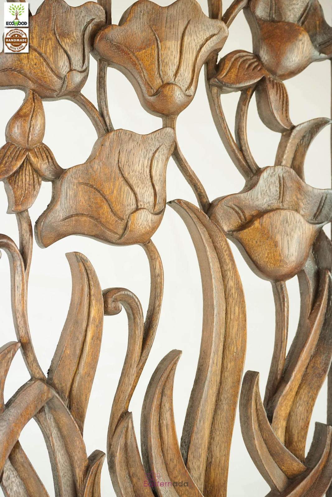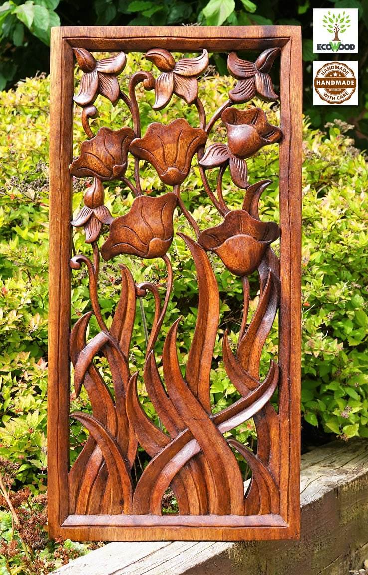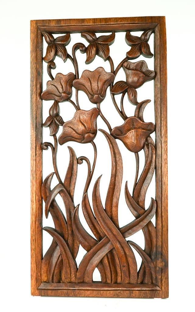 Hand Carved Wood Sculpture Wall Decoration Art Panel Flower Buds 30x 60cm