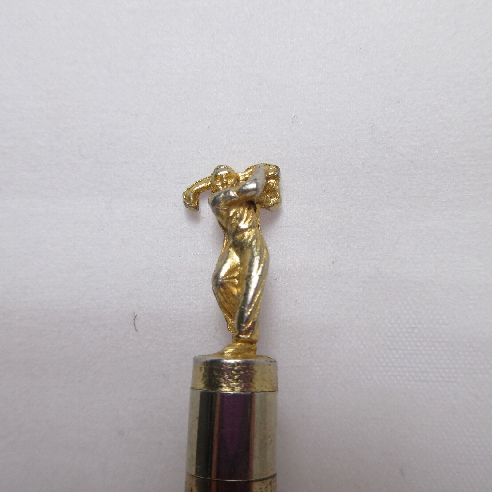 Approx. 3" long with golfer's figure, approx. 2.5" without it. Good condition. Has scuffs and traces of active use. See photos.