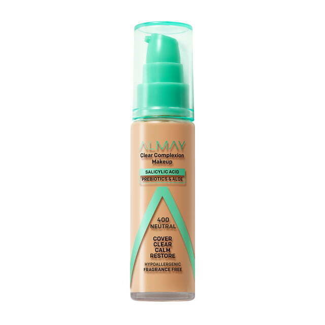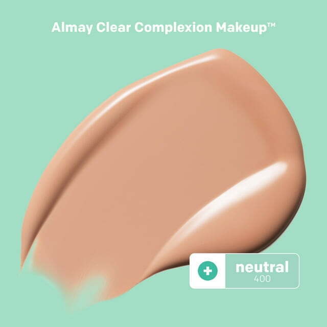 Almay Clear Complexion Acne Foundation Makeup with Salicylic Acid - Lightweight, Medium Coverage, Hypoallergenic, Fragrance Free, for Sensitive Skin, 400 Neutral, 1 fl oz.