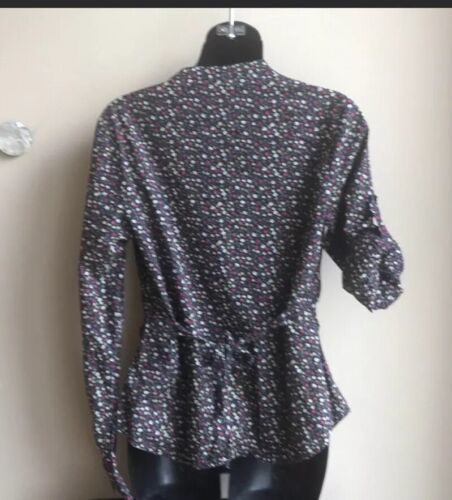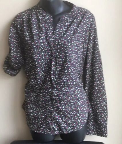 Banana Republic Womens Black Multicolor Sz S . Condition is Pre-owned. Cute blouse with small floral print . You can wear the sleeves as long so as rolled cuff. 100% cotton . Gently used 2-3 times .