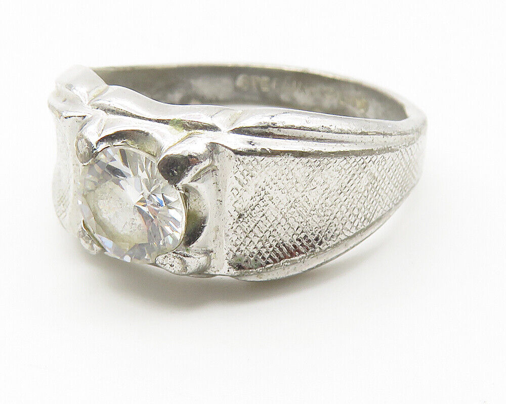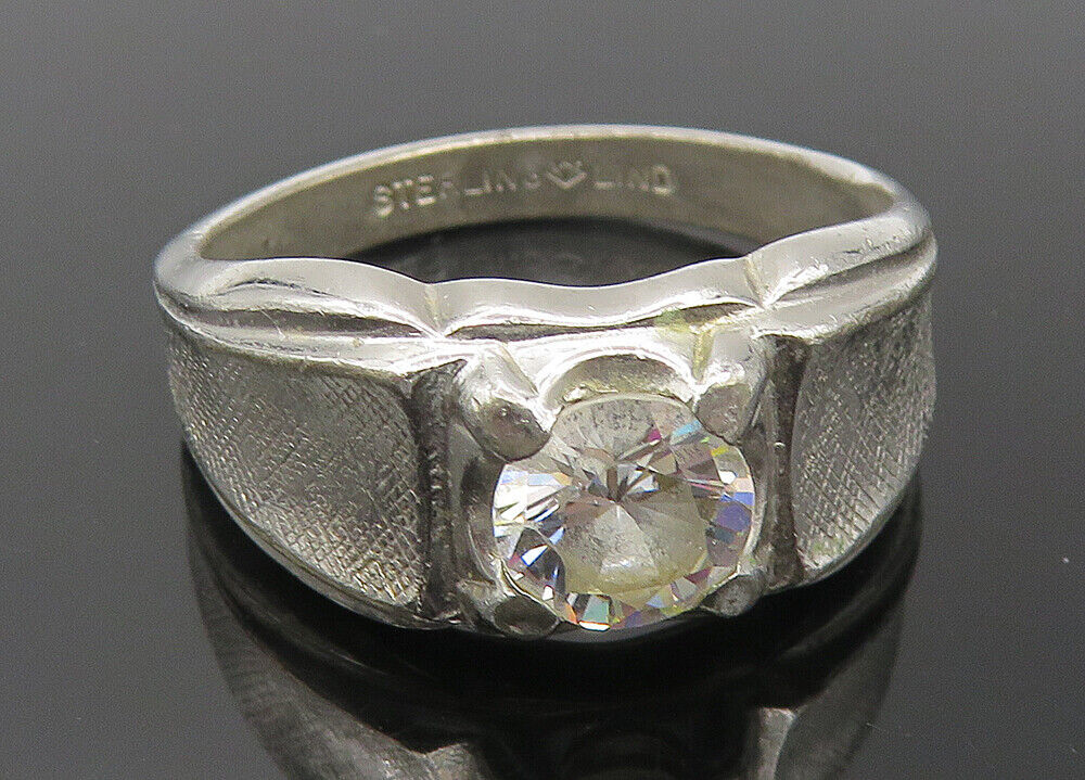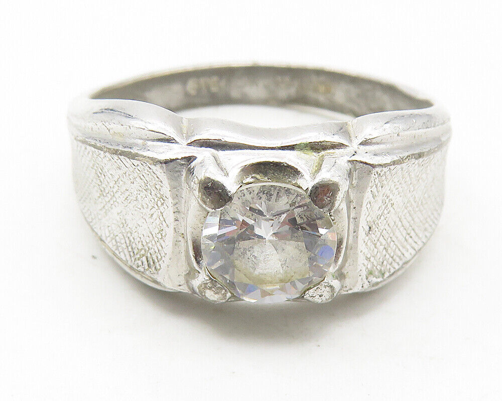 LIND 925 Sterling Silver - Vintage Cubic Zirconia Large Band Ring Sz 11- RG11672