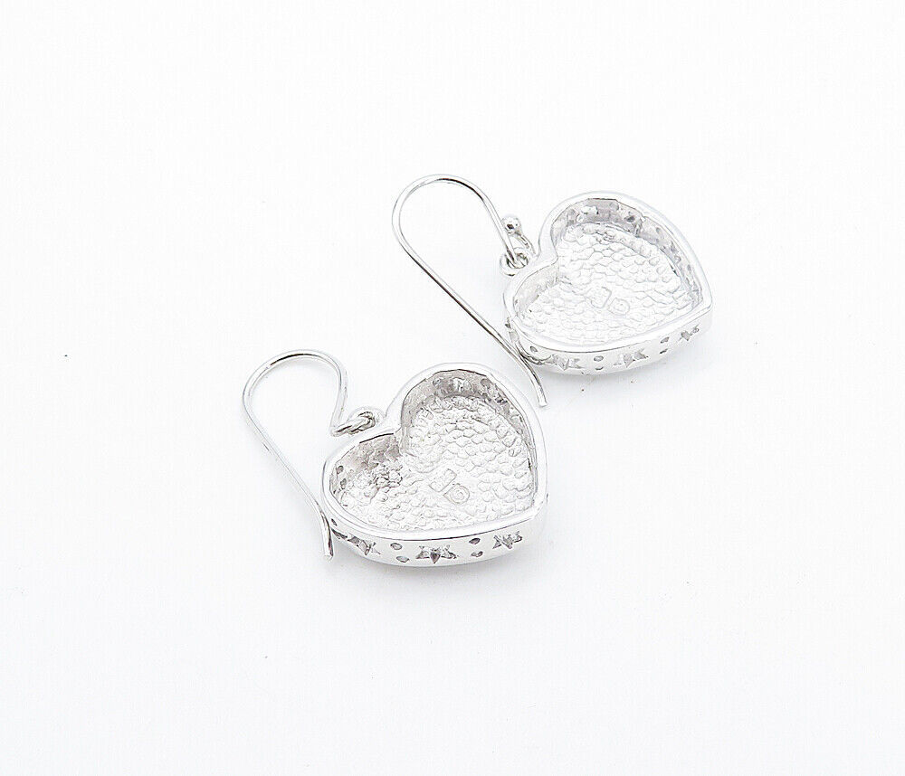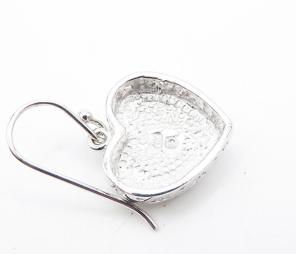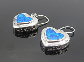 925 Sterling Silver - Inlaid Blue Fire Opal Love Heart Dangle Earrings - EG3314