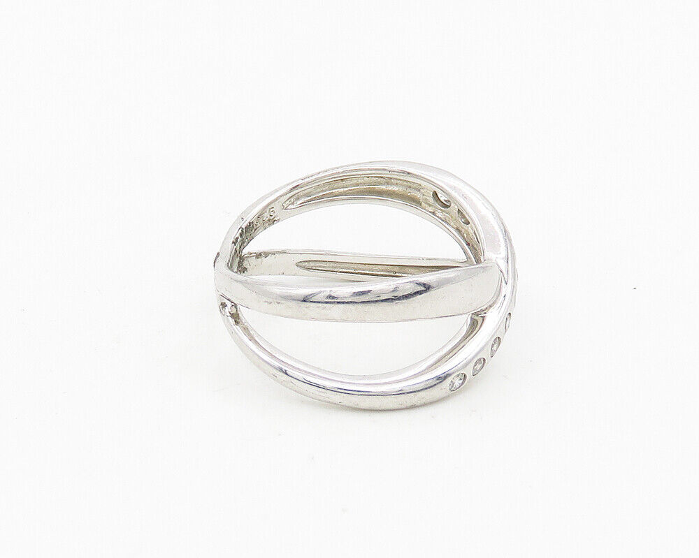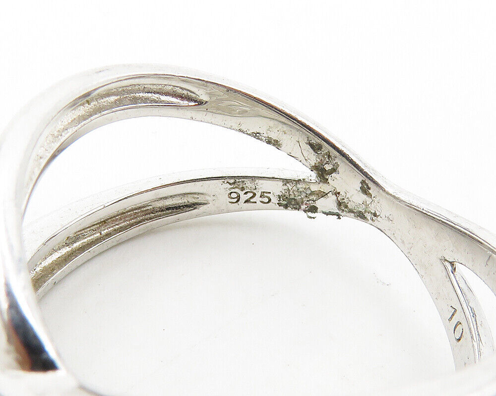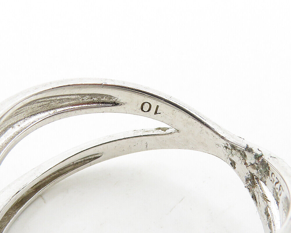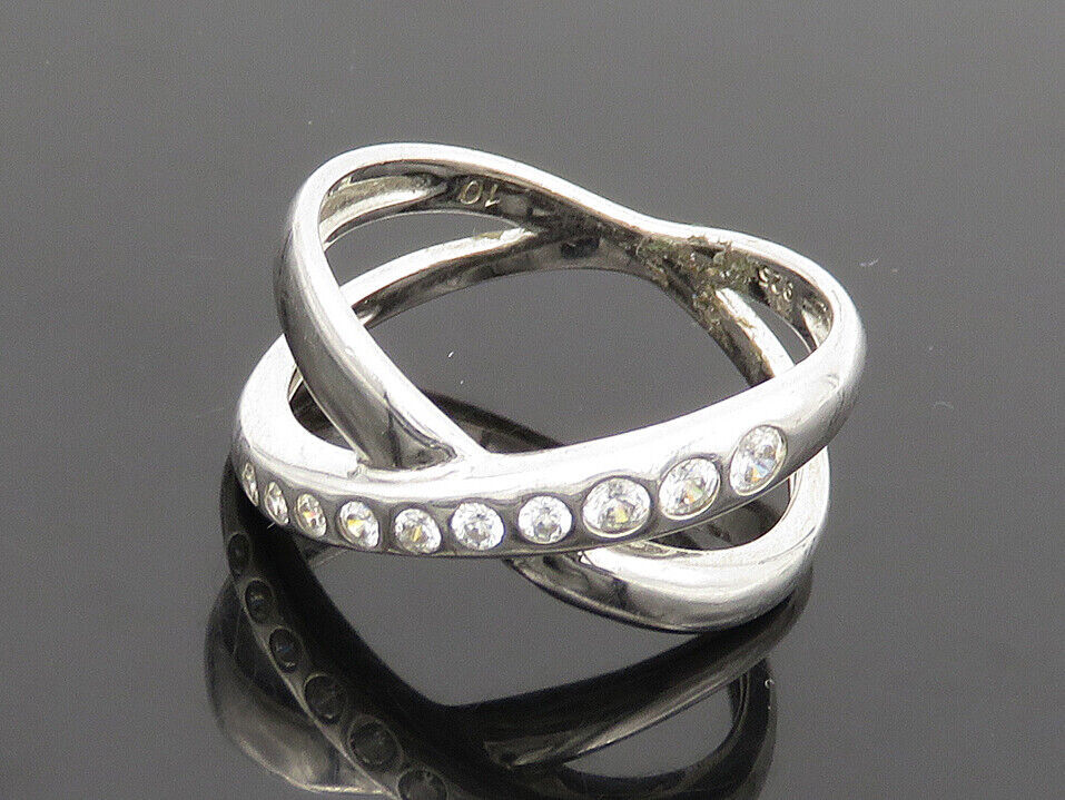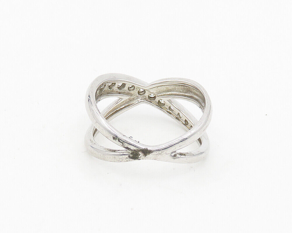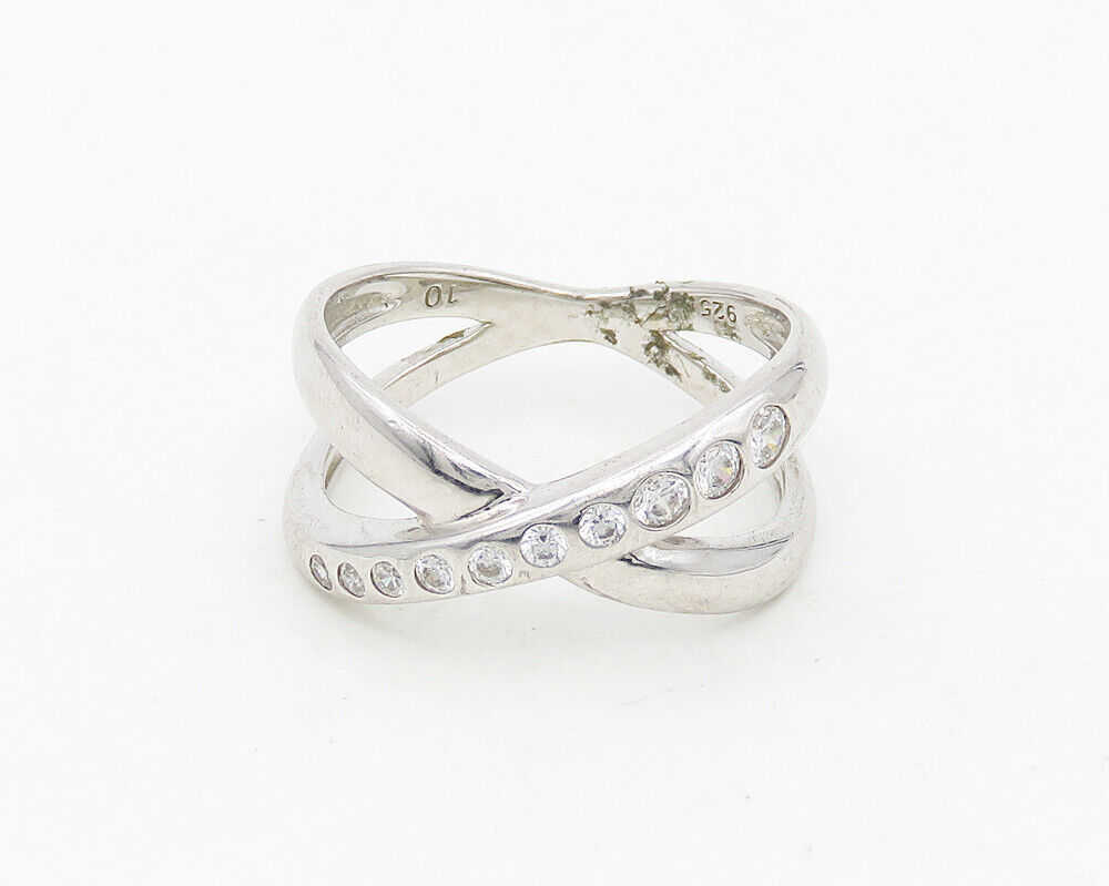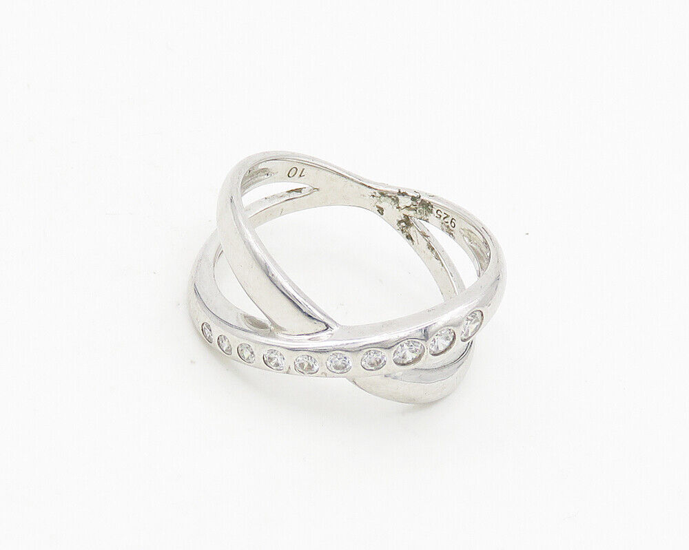 925 Sterling Silver - Cubic Zirconia Crossed Shank Band Ring Sz 10 - RG18655