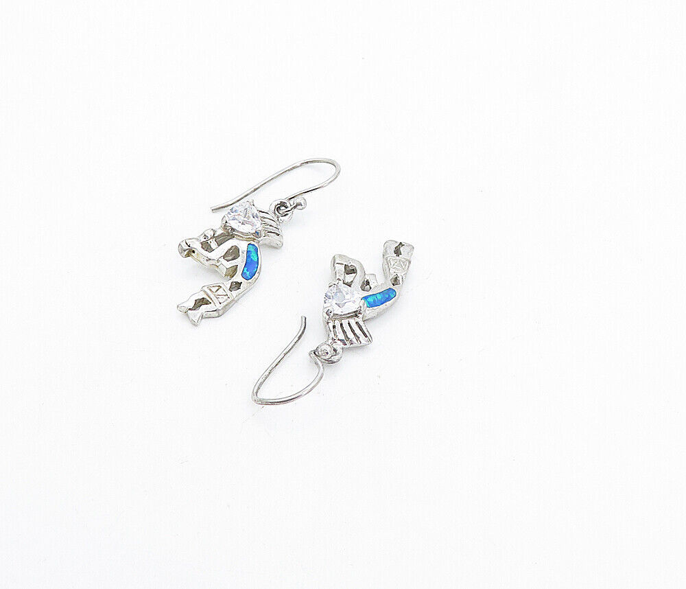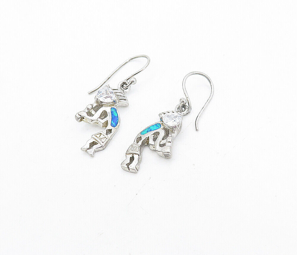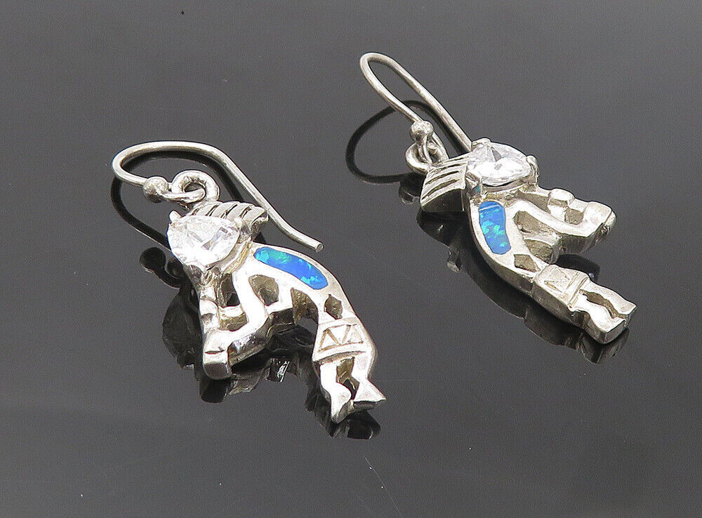 925 Sterling Silver - Fire Opal & Cubic Zirconia Kokopelli Drop Earrings- EG3497