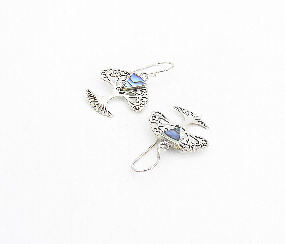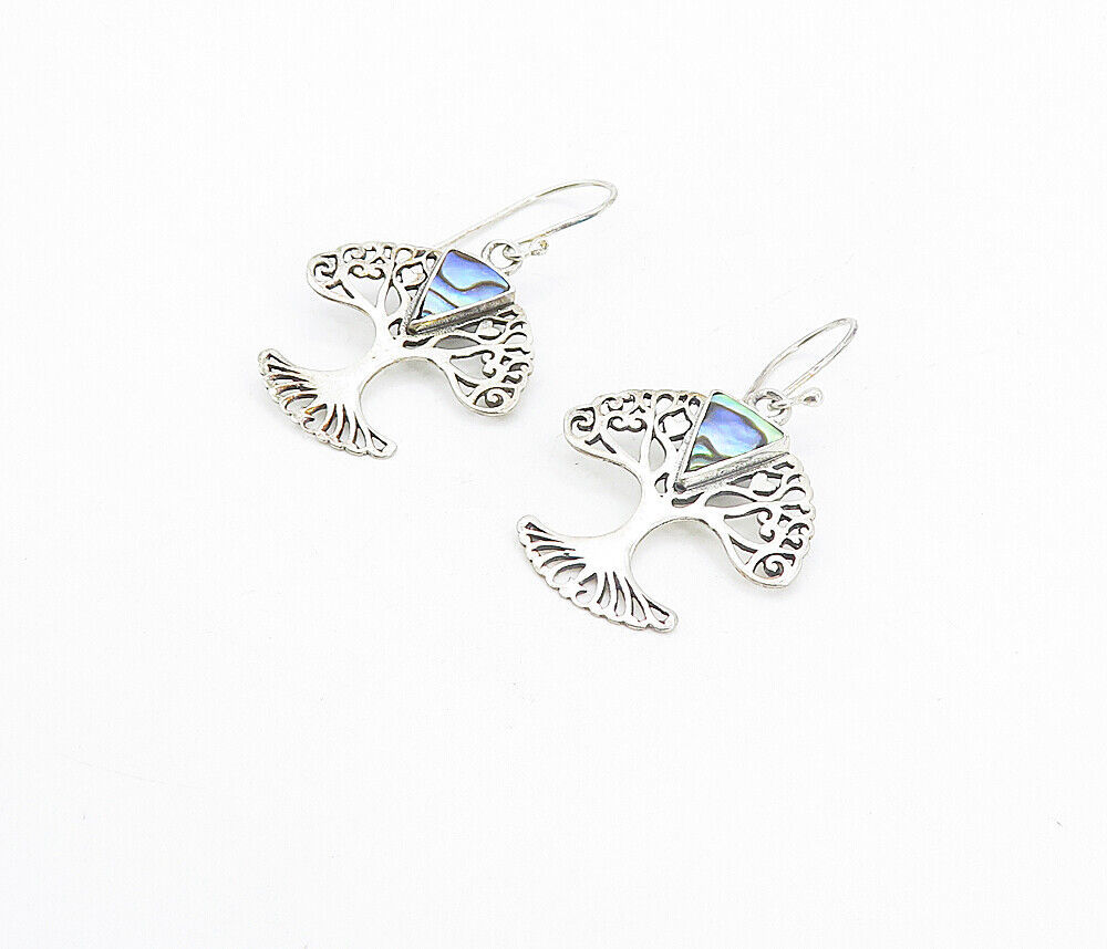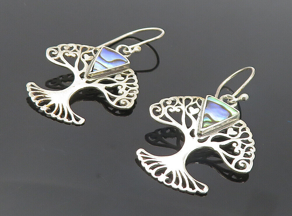 925 Sterling Silver - Inlaid Abalone Shell Tree Of Life Dangle Earrings - EG3499