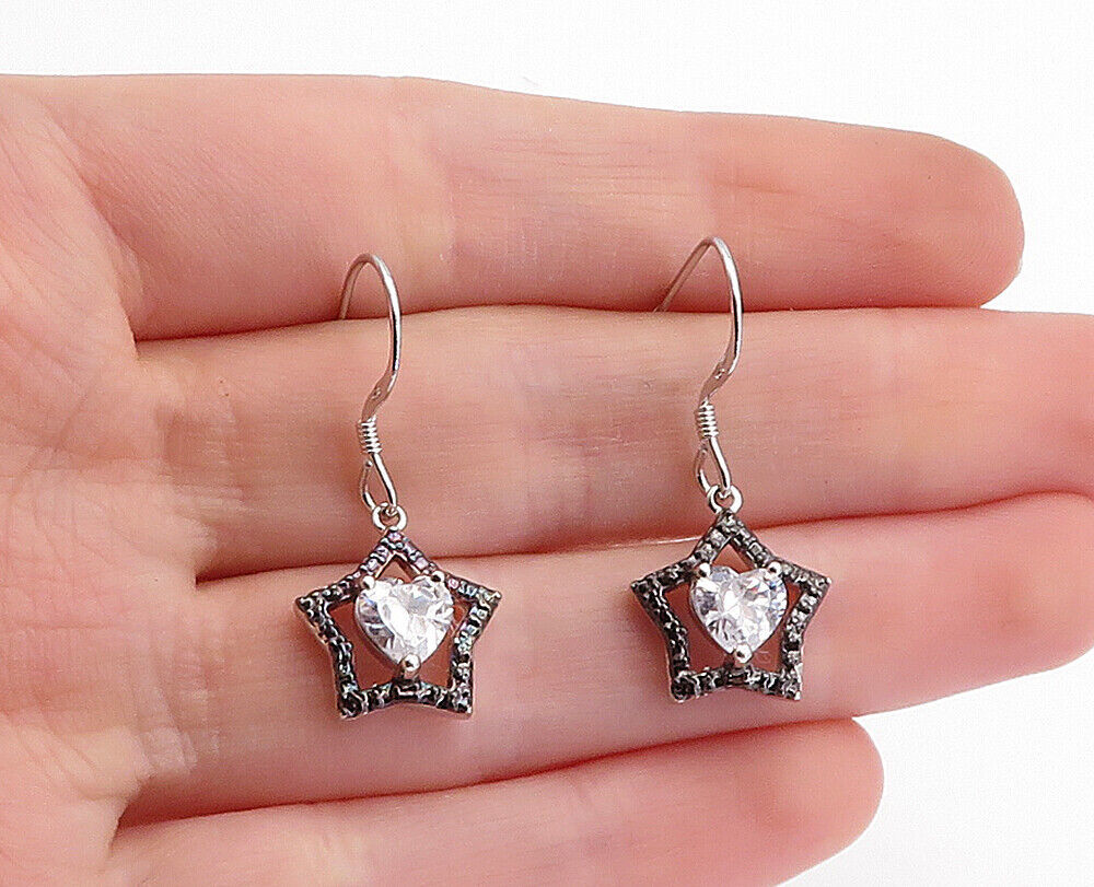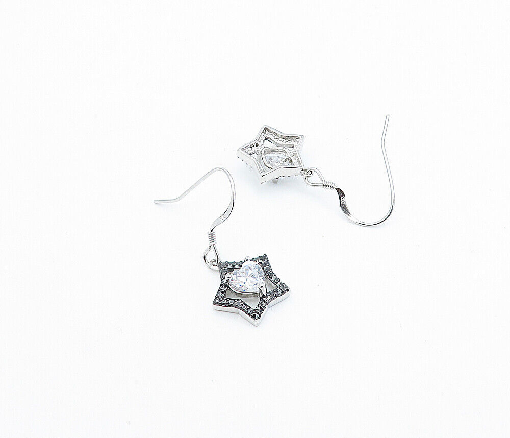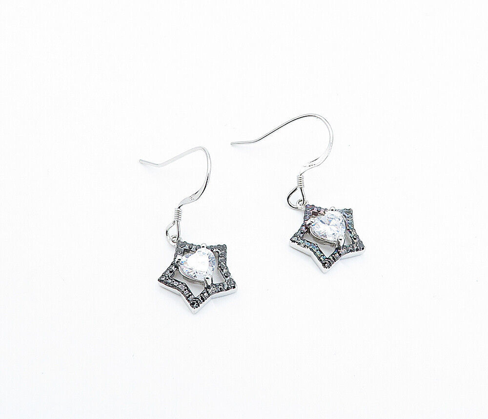 925 Sterling Silver - Shiny Cubic Zirconia Two Tone Star Drop Earrings - EG2105