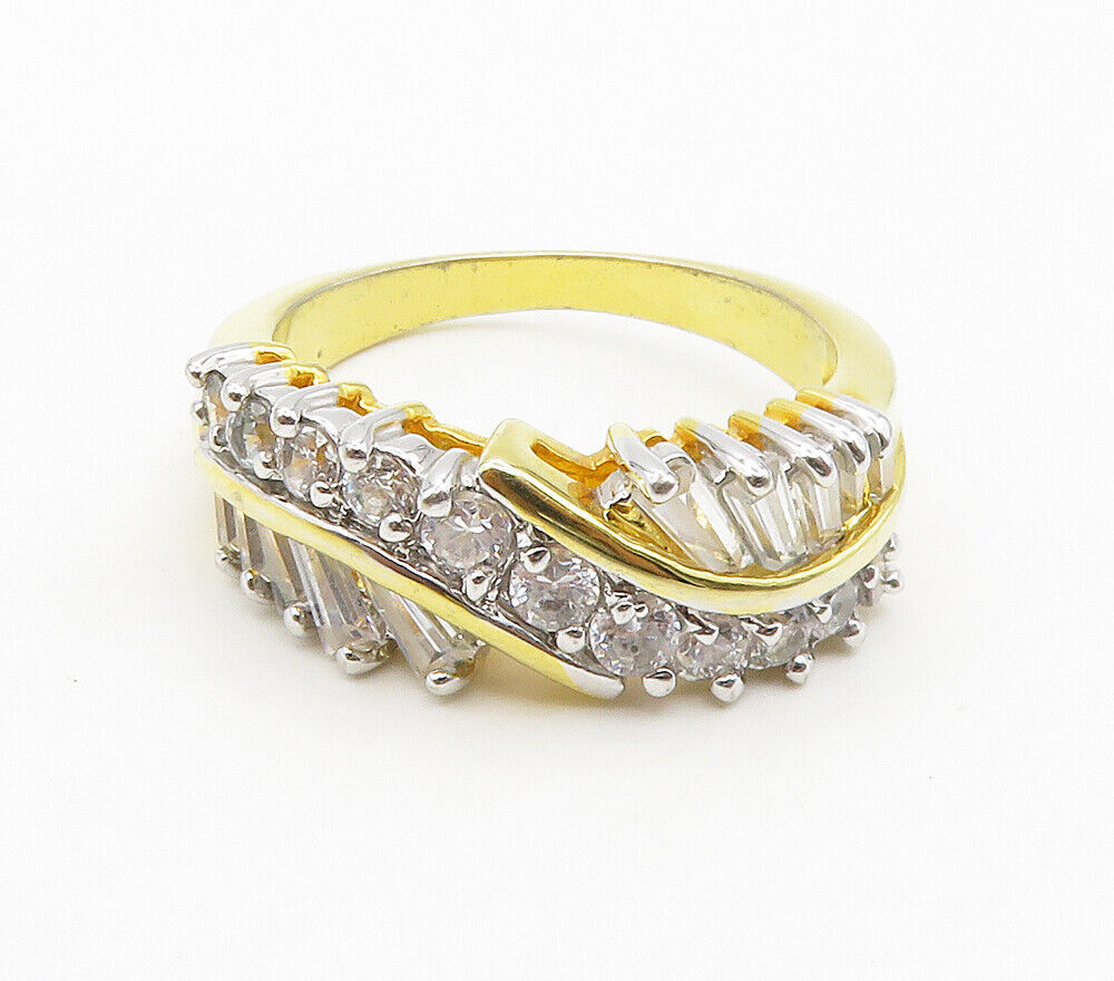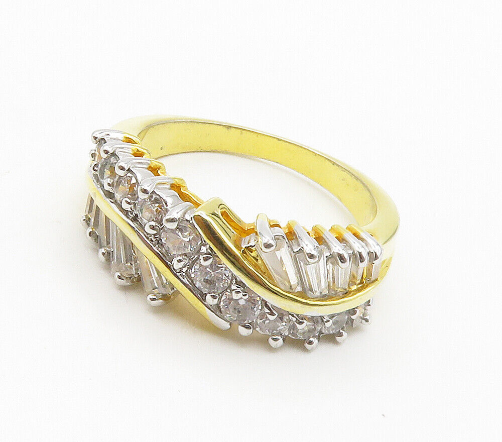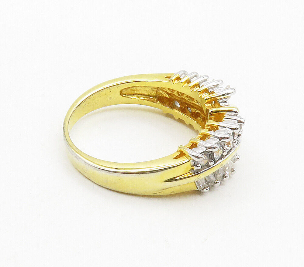 925 Sterling Silver - Cubic Zirconia Gold Plated Shiny Band Ring Sz 10 - RG15706