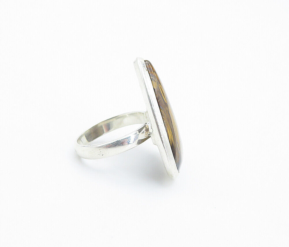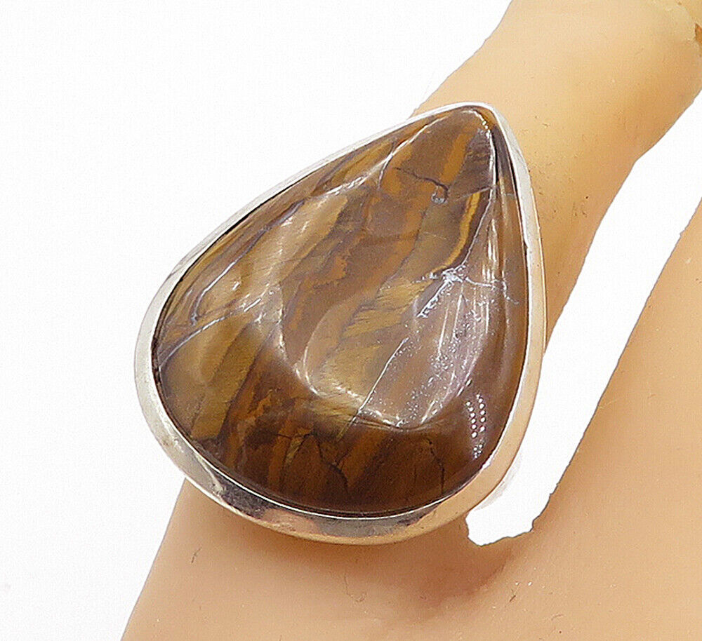 925 Sterling Silver - Pear Shape Tiger's Eye Shiny Cocktail Ring Sz 7 - RG8492