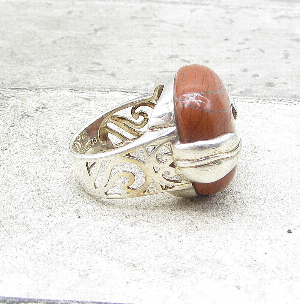 925 Sterling Silver - Red Jasper Floral Wrapped Solitaire Ring Sz 7 - RG1570
