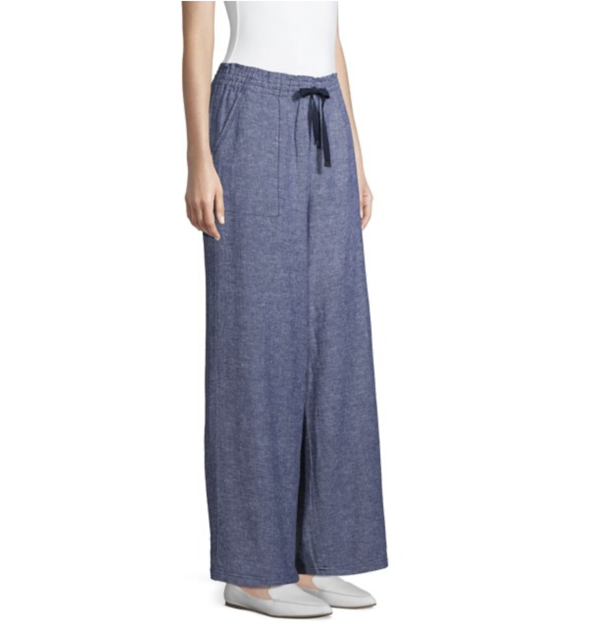 Features: Elasticized waist for added comfort; drawstring tie Pockets: 2 front pockets hold essentials Fit: Relaxed Closure: Pull-on style Rise and Inseam: High-rise; 29” inseam Material: 55% Linen/45% Rayon Care: Machine washable