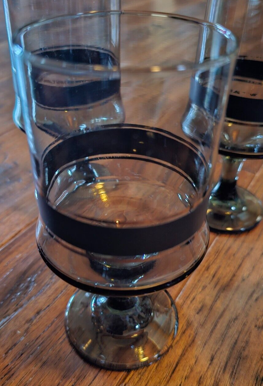 Vtg Libbey Black & Gold Striped Dinner Glasses set of 6 1960's Cocktail Glasses