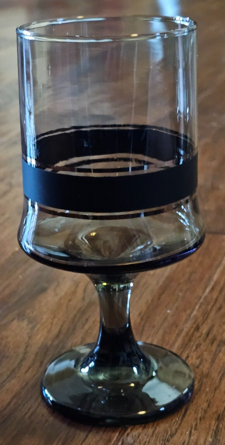 Vtg Libbey Black Gold Striped Dinner Glasses set of 6 1960's Cocktail Glasses