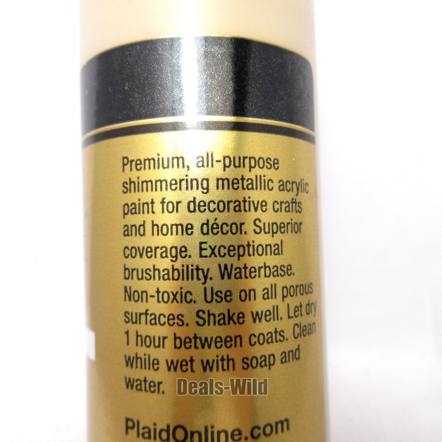 Metallic: premium, all-purpose shimmering metallic acrylic paint for decorative crafts and home decor. Superior coverage. Exceptional brushability. Waterbase. Non-toxic. Use on all porous surfaces.