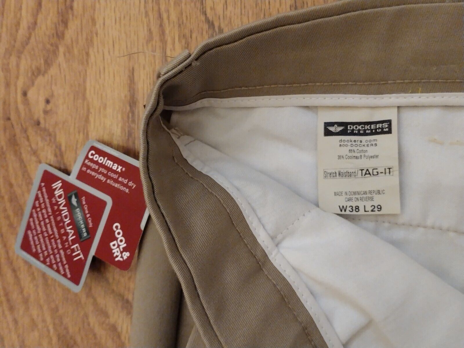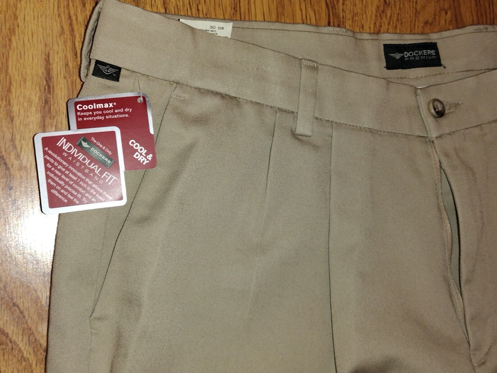 NWT Dockers Premium Tan Khaki Pleated Coolmax Individual Fit Dress Pants 38x29. Pants come brand new with tags as shown. Ships insured.