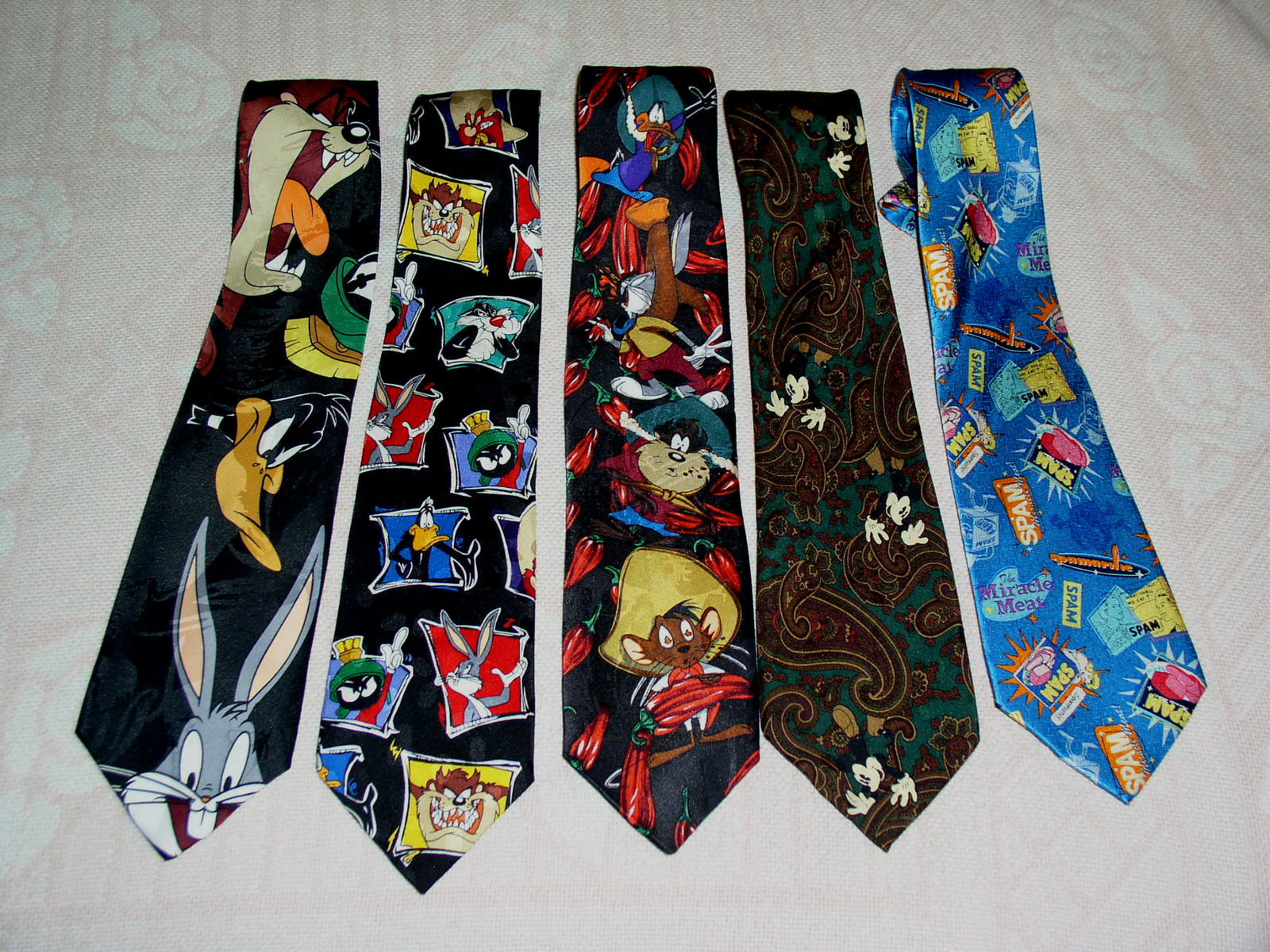 Necktie Lot Of 5 Cartoon Looney Tunes Disney Spam Excellent Condition