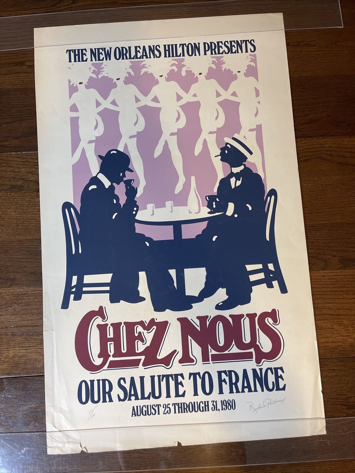 VTG 1980 NEW ORLEANS Chez Nous Salute To France Advertising PRINT Signed 35”x21”