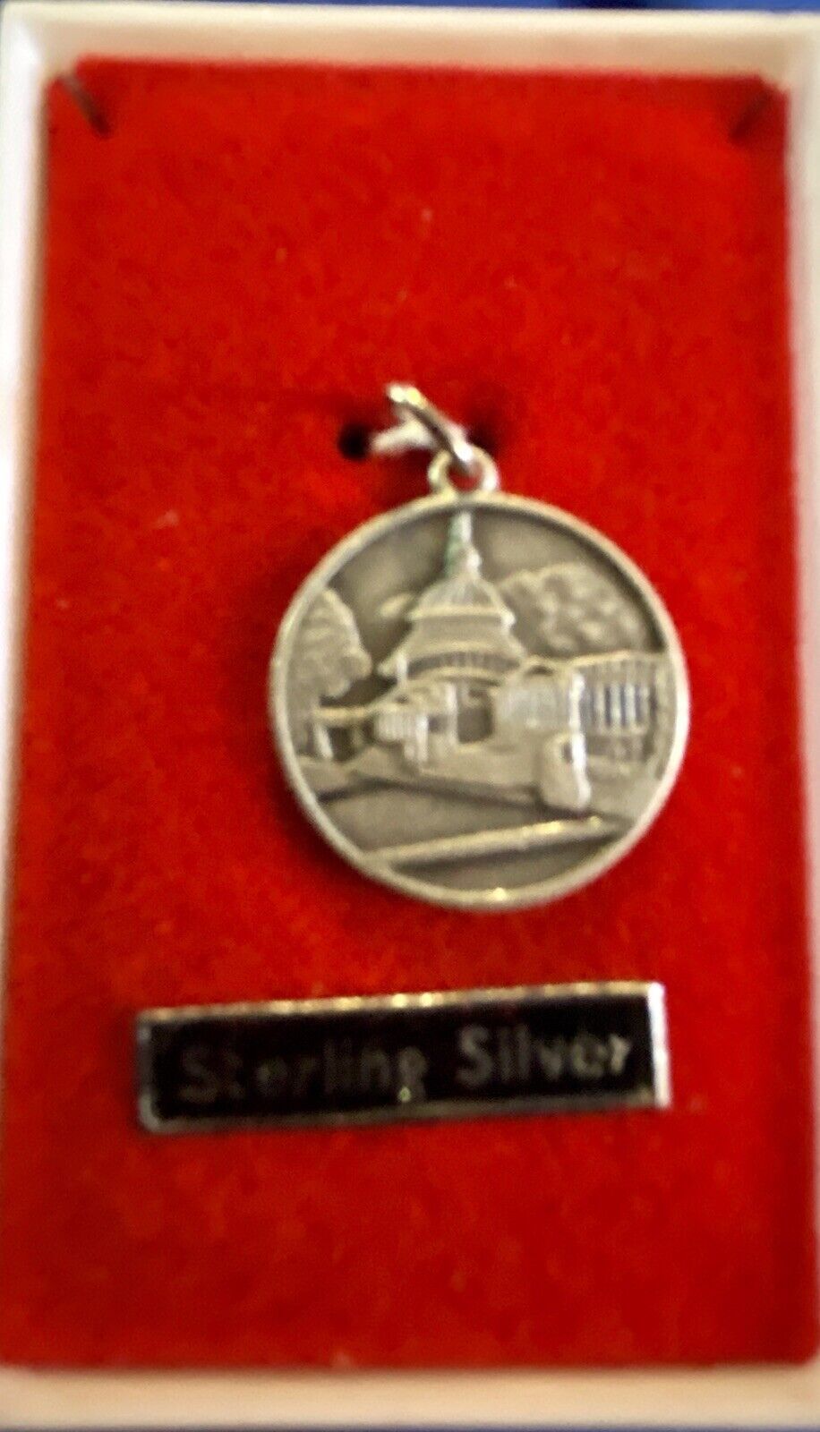 Vintage Sterling Silver Washing DC Capital Building Round Pendant Charm
