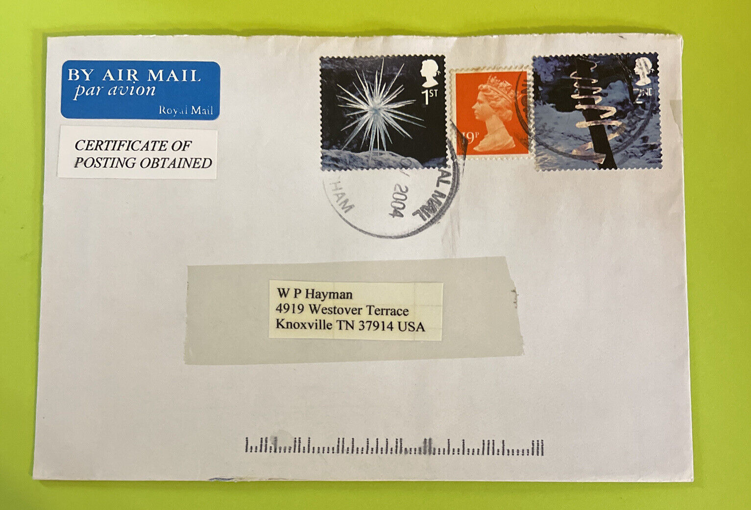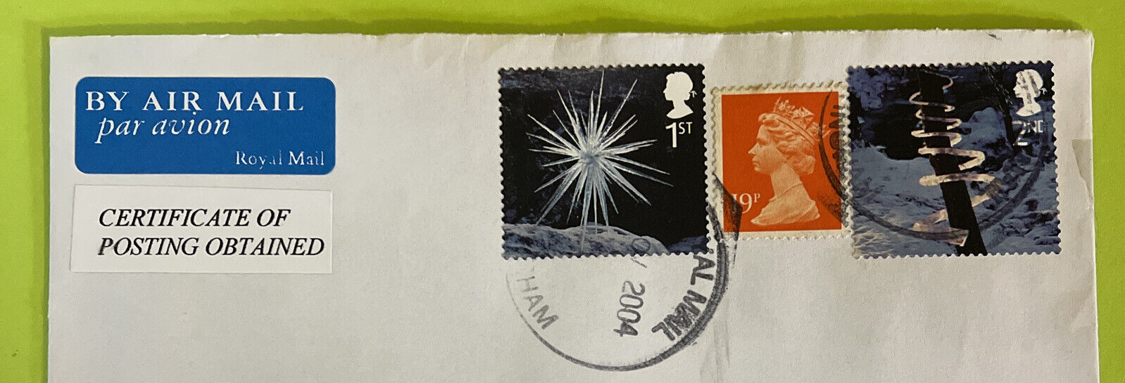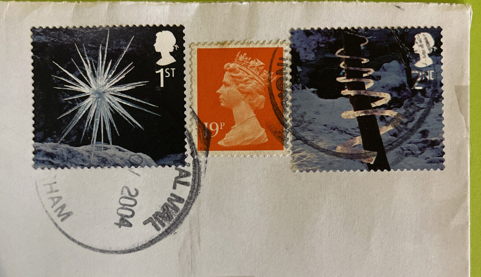 Envelope With Three 2004 British Collectable Stamps. Shipped with USPS Priority Mail.