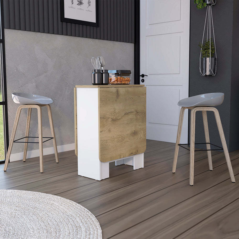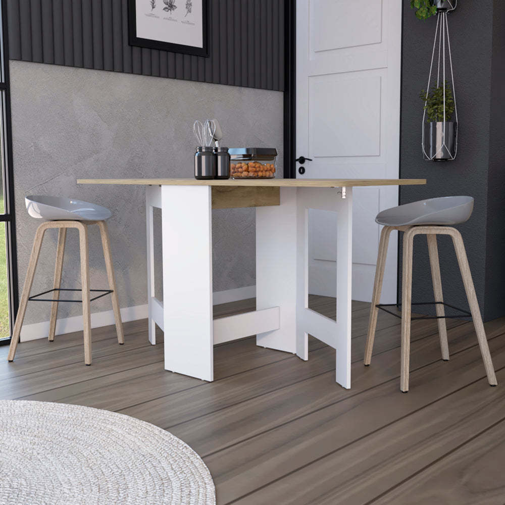 Discover versatility without compromising style with the Folding Dining Table Evart. Engineered to adapt to your lifestyle, this table offers a spacious setting when fully extended at 58.7"W X 23.6"D X 30.9"H. Yet, it effortlessly condenses to a compact 12.3"W X 23.6"D X 30.9"H for a tidy look. A resilient framework that supports up to 22 pounds makes it perfect for dining and work needs. Finished in white / macadamia-manufactured wood, it effortlessly blends functionality with contemporary aesthetics.