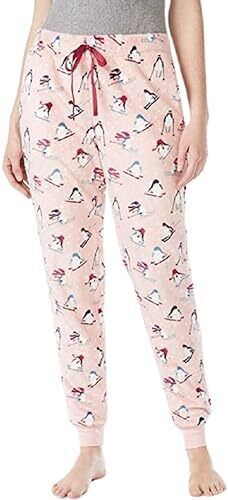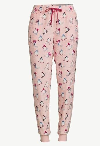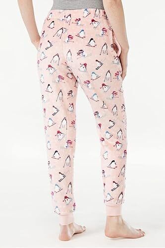 Womens Plush Pink Skiing Penguin Joggers Sleep Pants Pajama Bottoms Size S (4-6)