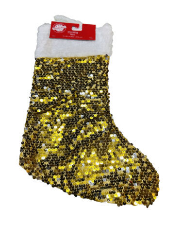Get ready for the holidays with this festive Christmas stocking! This stocking features eye-catching flip sequins that change color from yellow to silver with a simple swipe of your hand. Measuring 12 inches tall, it's the perfect size for stuffing with small gifts and treats.