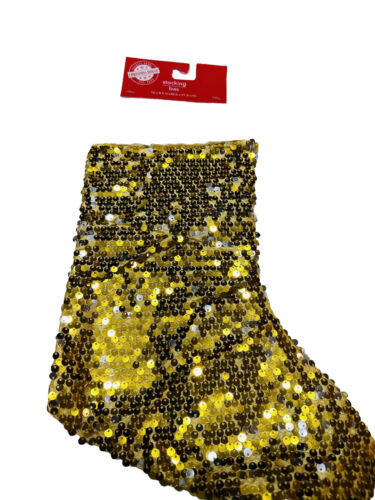 Christmas Stocking Yellow Color Changing Flip Sequin New 12 Inches Tall