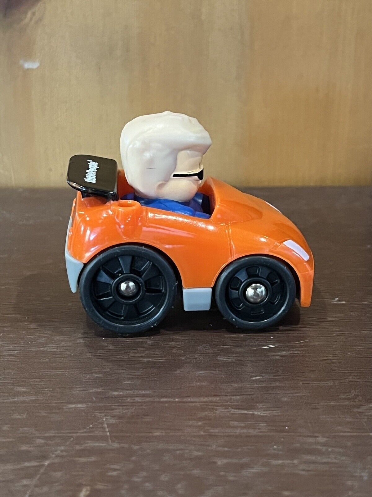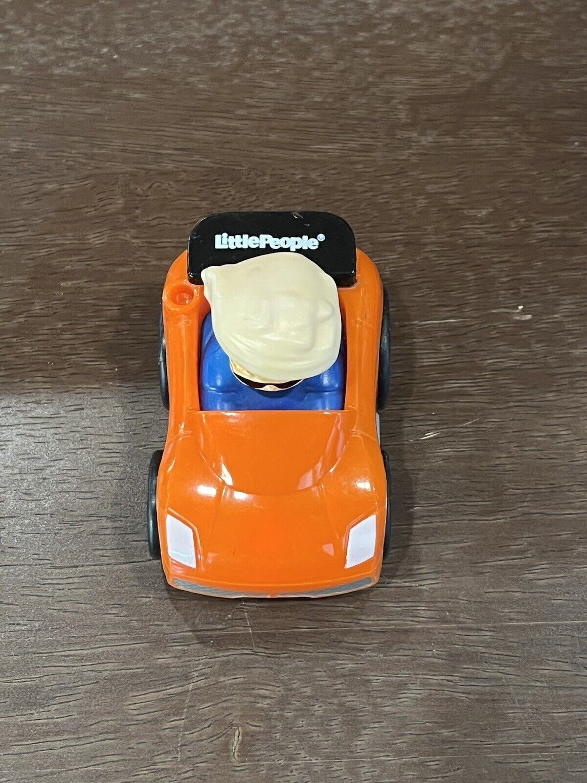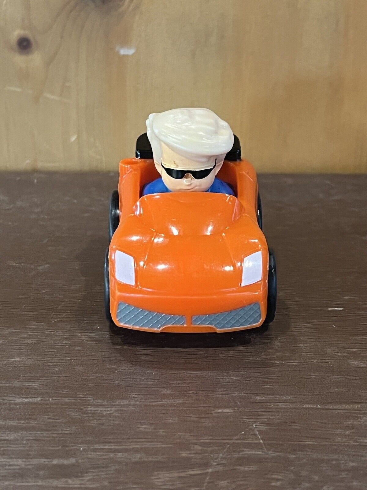 Fisher Price Little People Wheelies Orange Race Car Blonde Boy Sunglasses