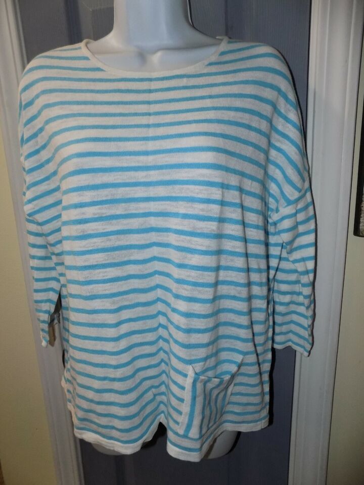 J. Jill White/Blue Striped Pullover Knit Shirt W/ Pocket Size S Women's NWOT