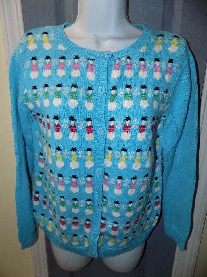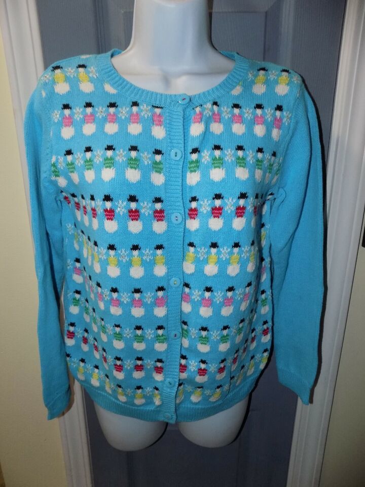 Tiara International Christmas Collection Snowman Blue Cardigan Sweater Size S