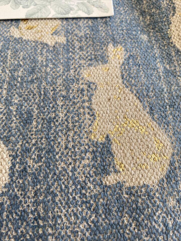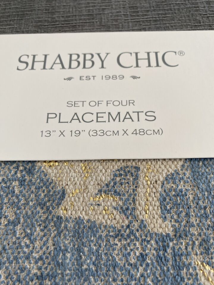 Shabby Chic set of 4 cream and blue with gold accent bunny rabbit placemats NEW Rachel Ashwell 13 X 19?.