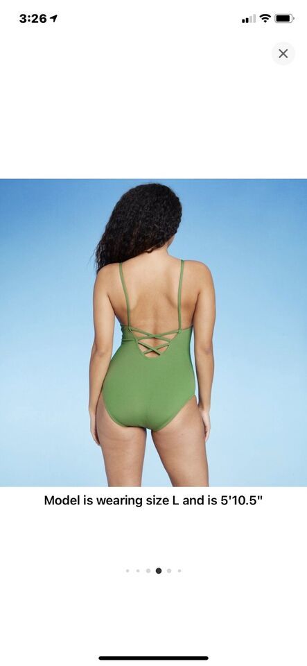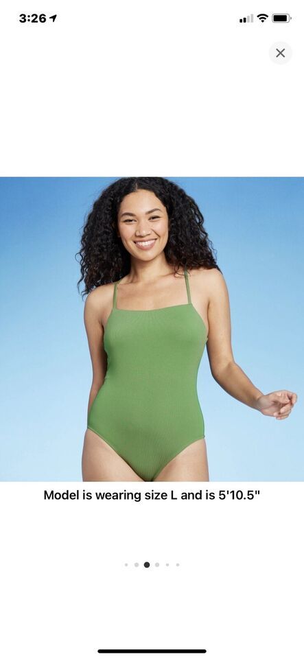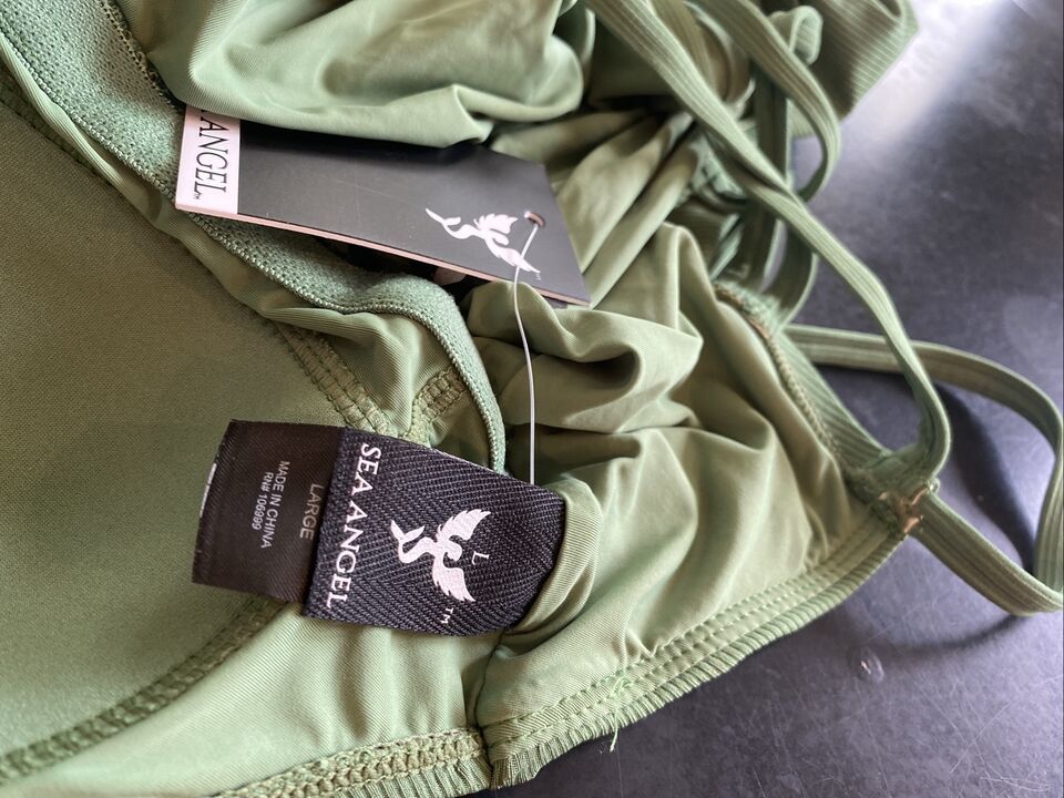 new sea angel square neck one piece swimsuit sz large L green cute!.