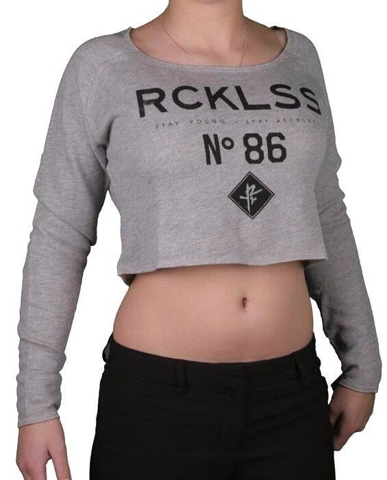 This is for a brand new with tags Young Reckless Women's Crooked No #86 Heather Gray Long Sleeve Crop Top