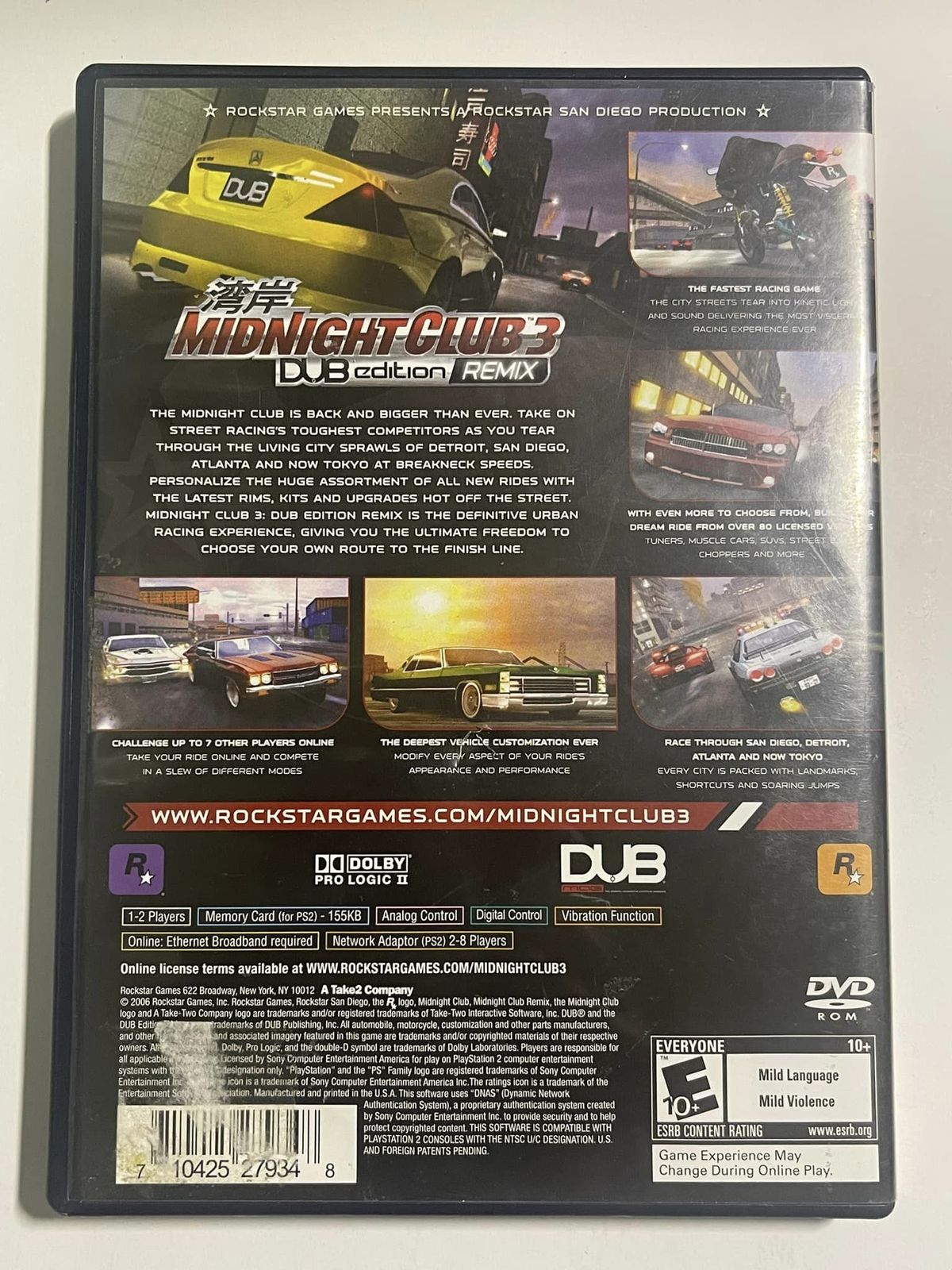 (Replacement Case & Manual) Playstation 2 - MIDNIGHT CLUB 3 DUB edition REMIX